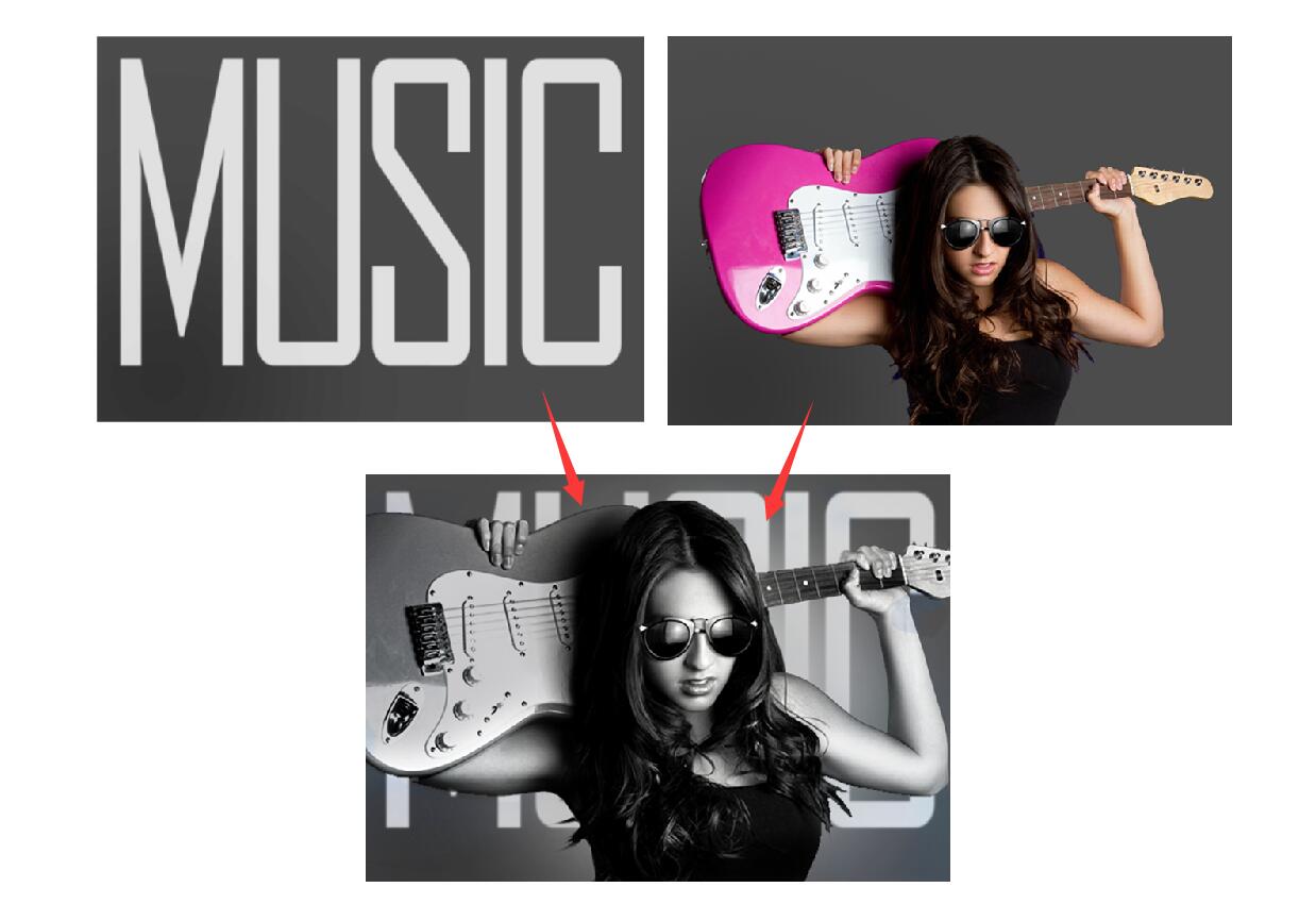 ------------文字放大作为底纹,人物去色朝前放-----------