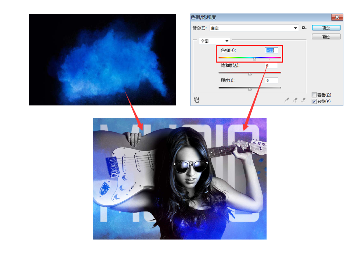 ------------加上彩色烟雾,并调整色相-----------