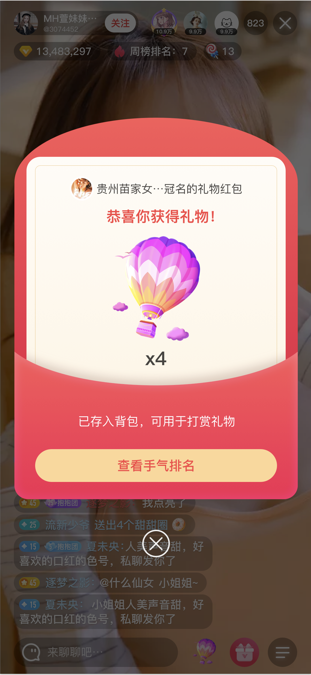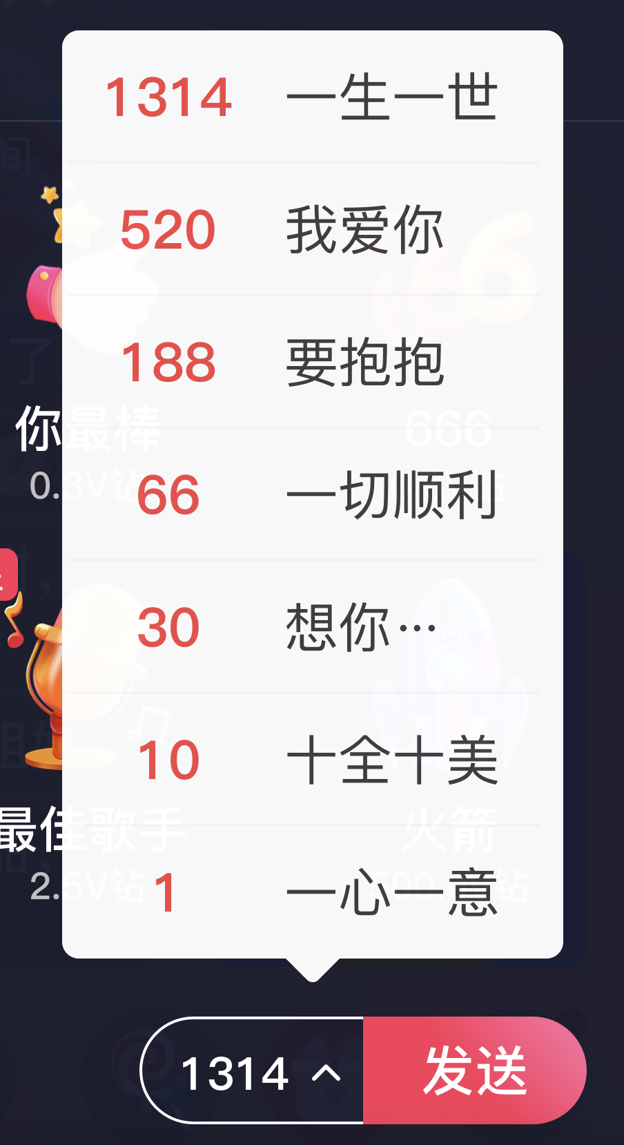 礼物快捷打赏