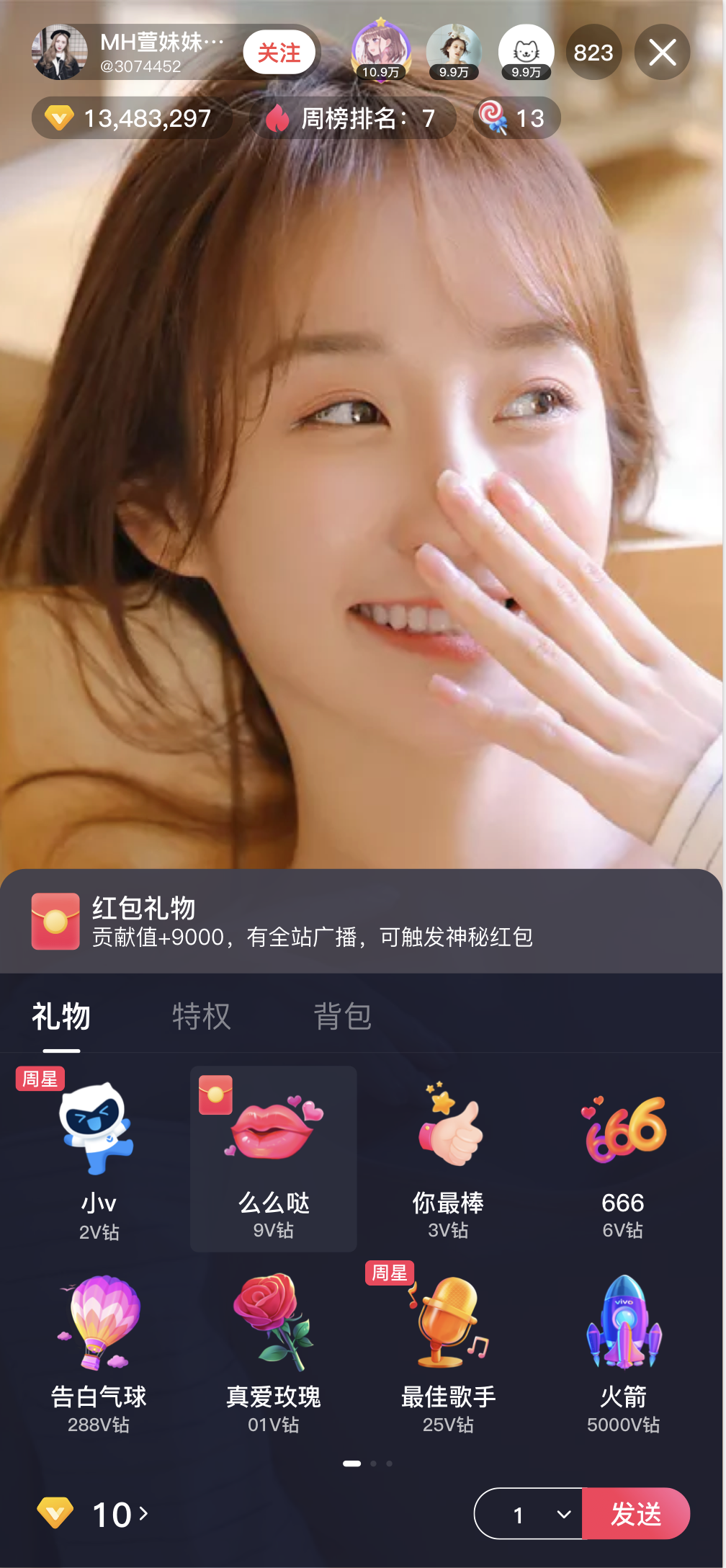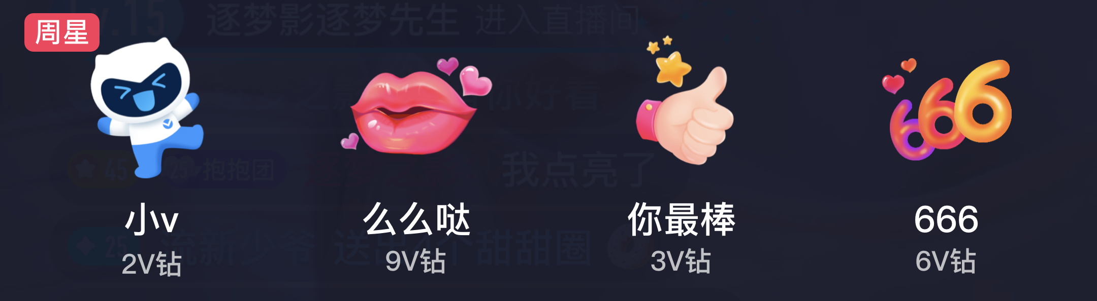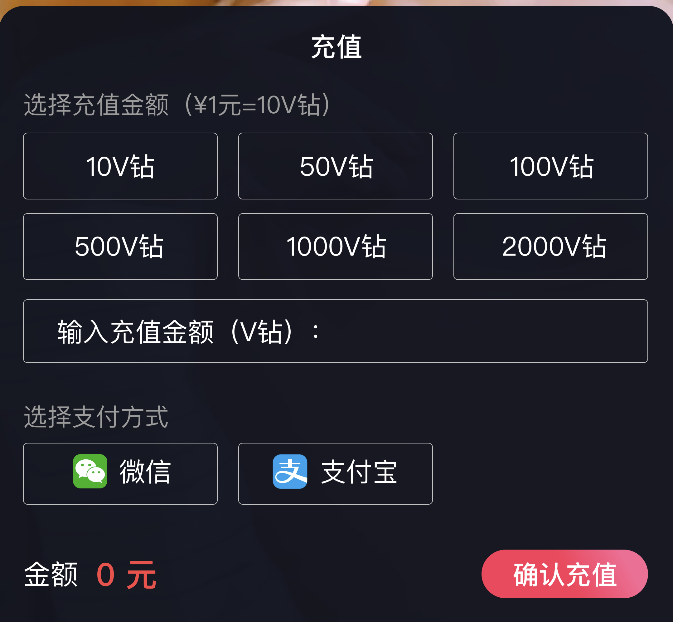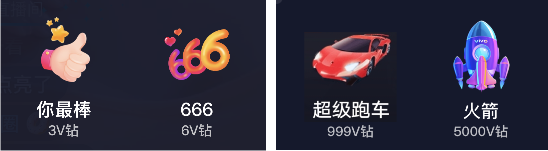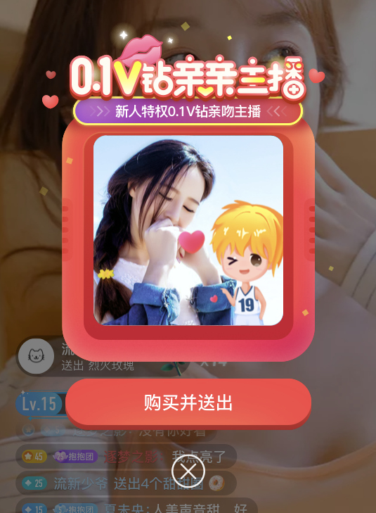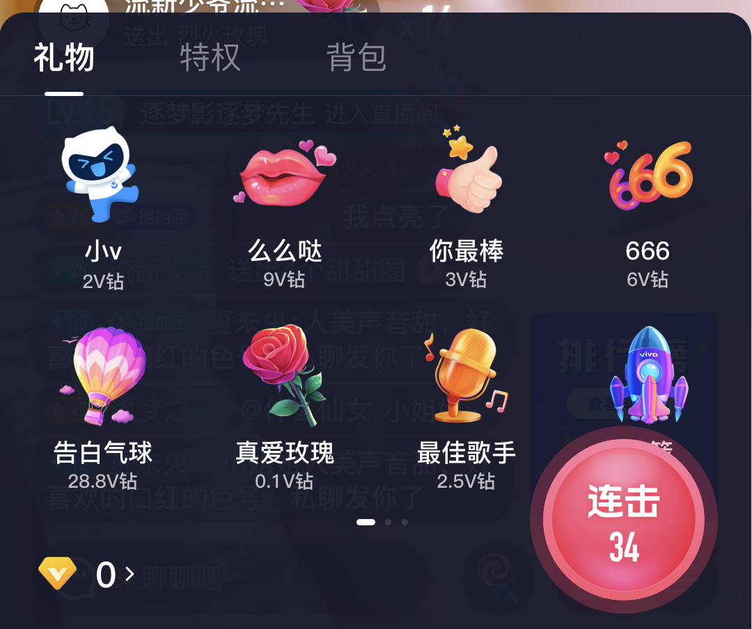 ▲使用V钻代替货币,1元=10v钻,降低用户的打赏成本感知,从而提升打赏欲望。