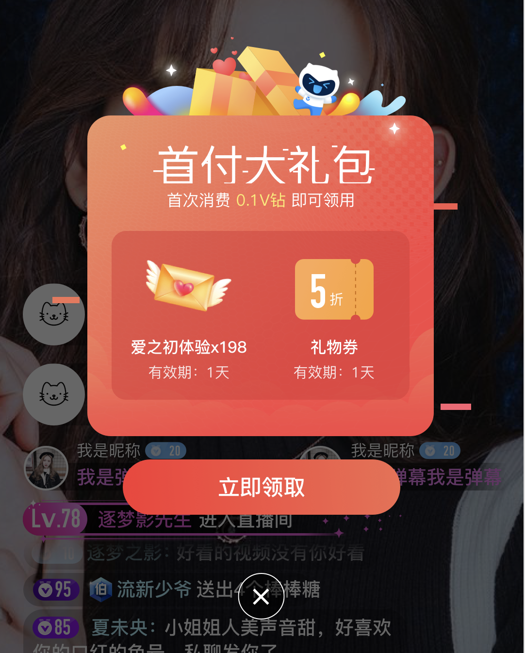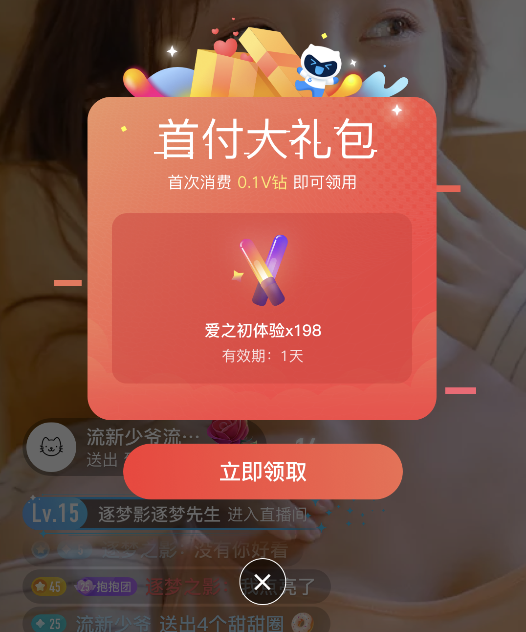 ▲打赏礼物面板首充有礼