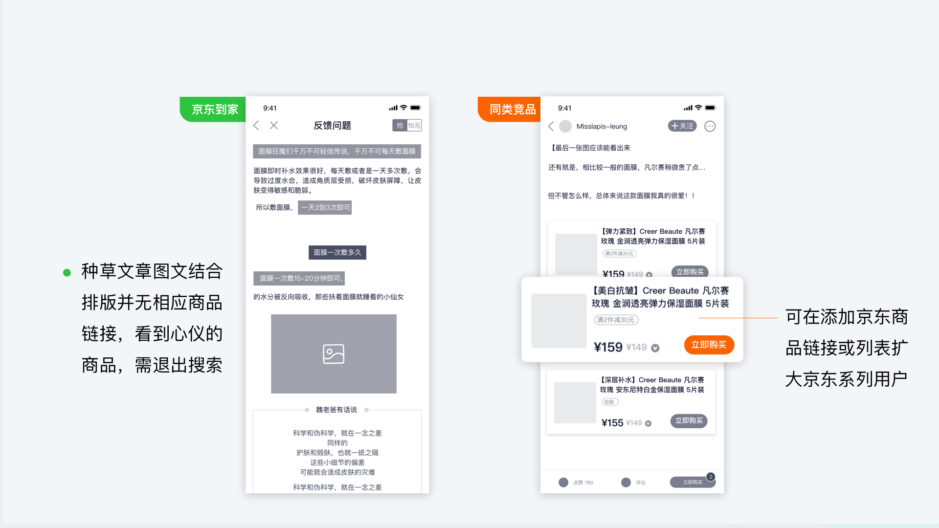 由以上可知,在一些干货教程和种草文章里添加互动和种草商品链接,可让用户在观看文章的同时产生与博主的互动,也可以迅速购买到想要的商品。建议京东到家添加相关商品链接,形成闭环。