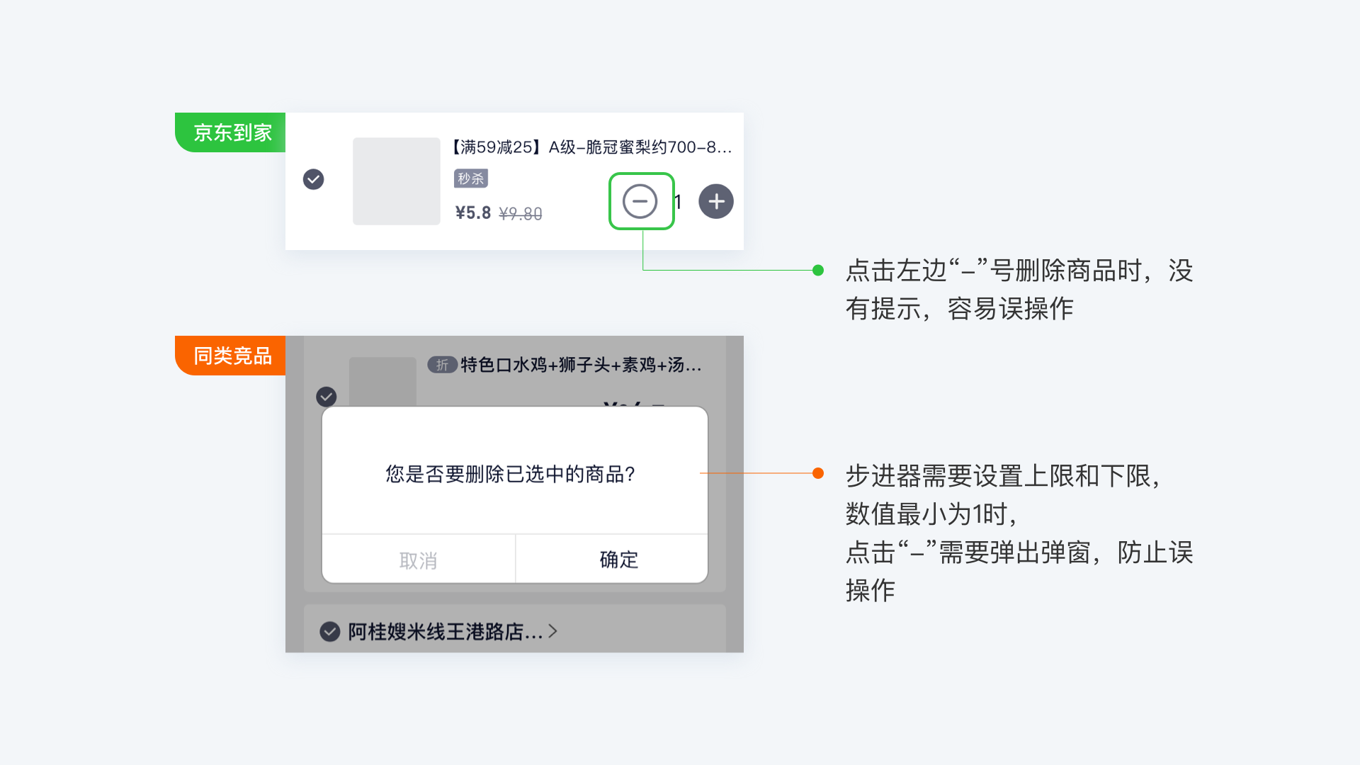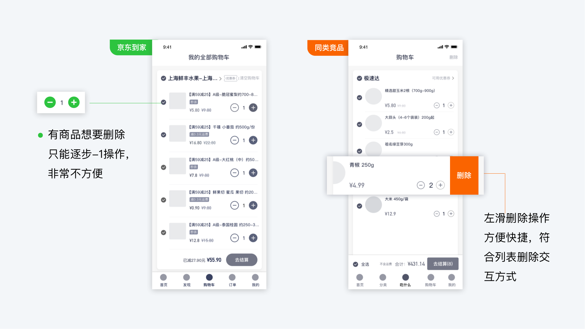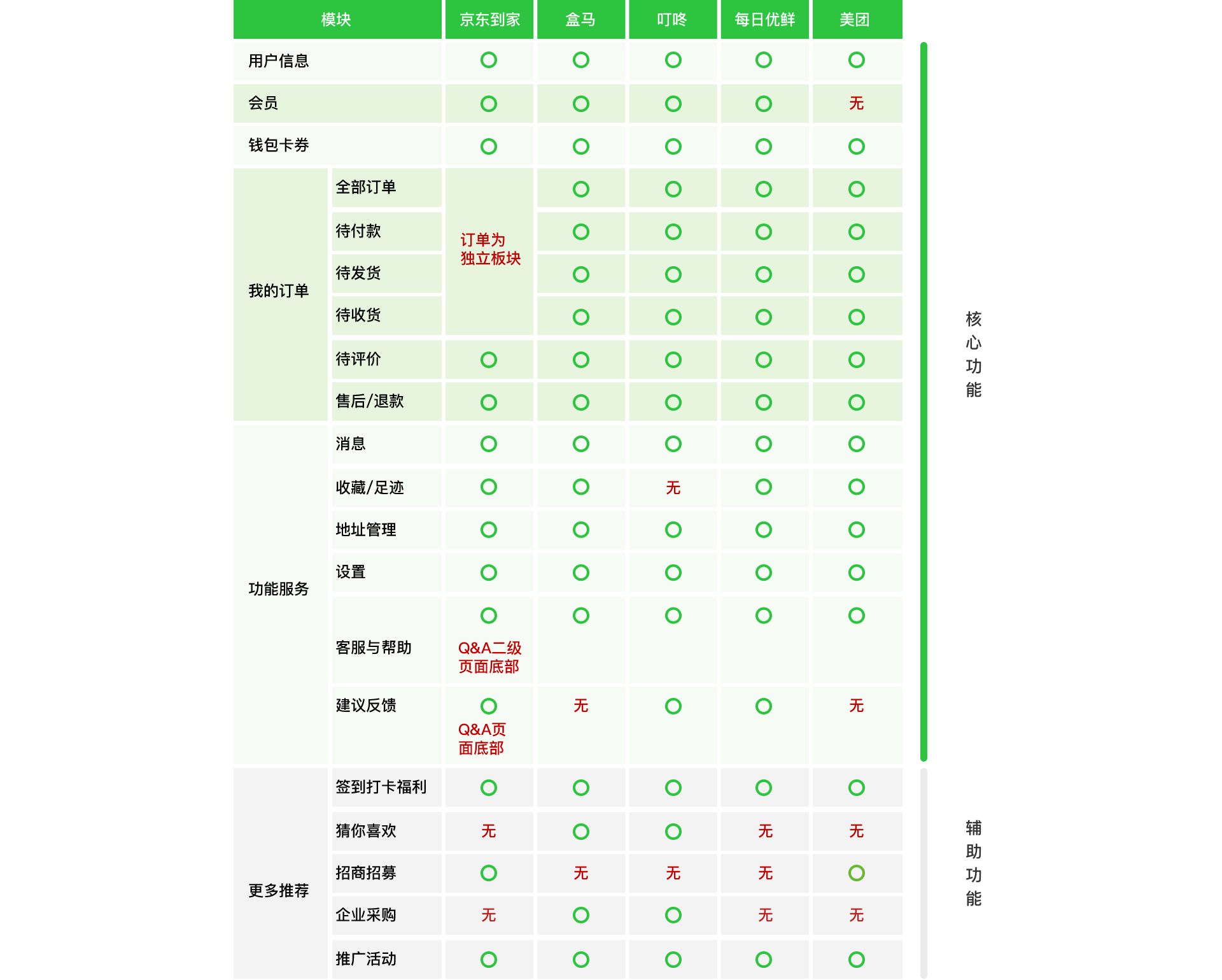 为了更全面、客观分析,以购物车为案例,选取方向为相同生鲜类产品、相近的电商类、外卖类作为竞品分析对象。