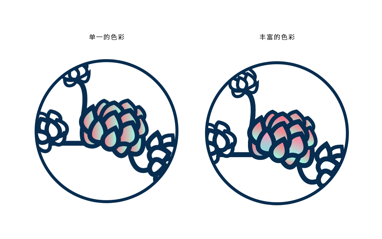 接下仍然可以采用这样的方式来给剩余的叶片上色,需要注意的是色彩的平衡和控制。让渐变变得灵动起来~