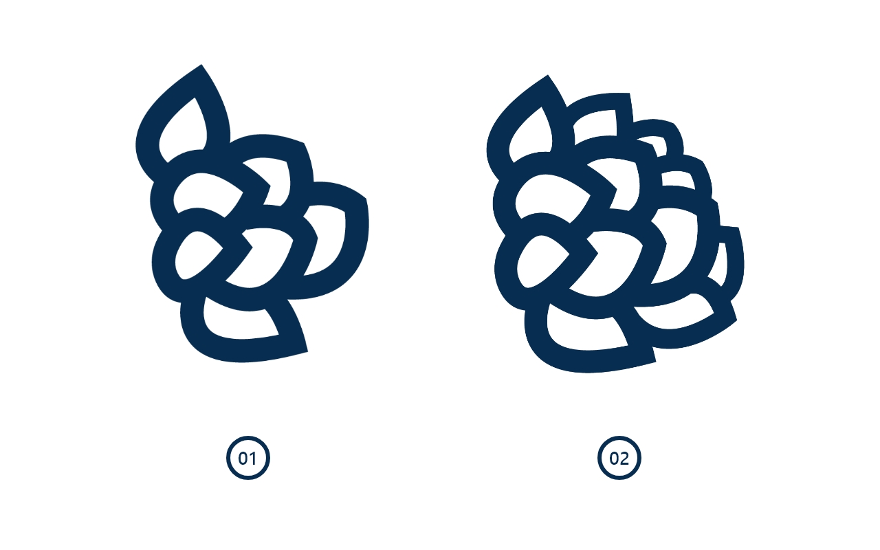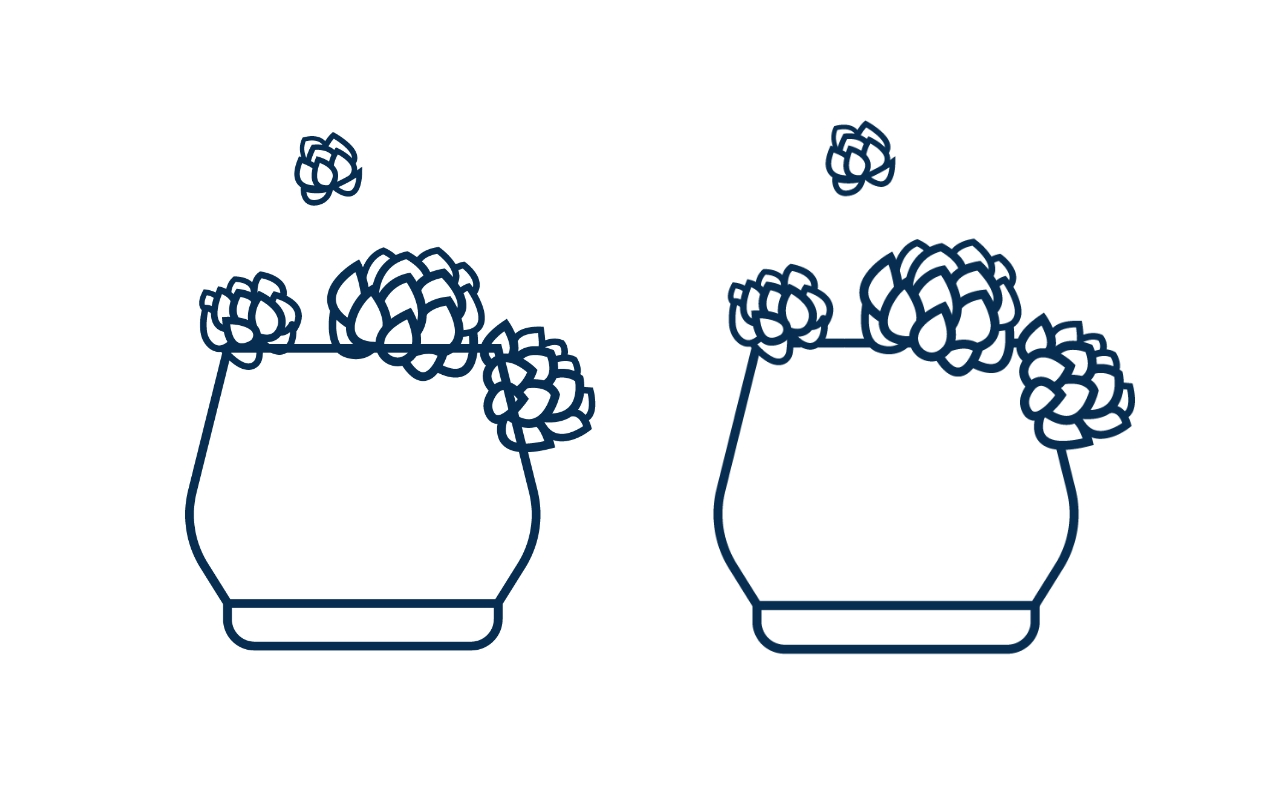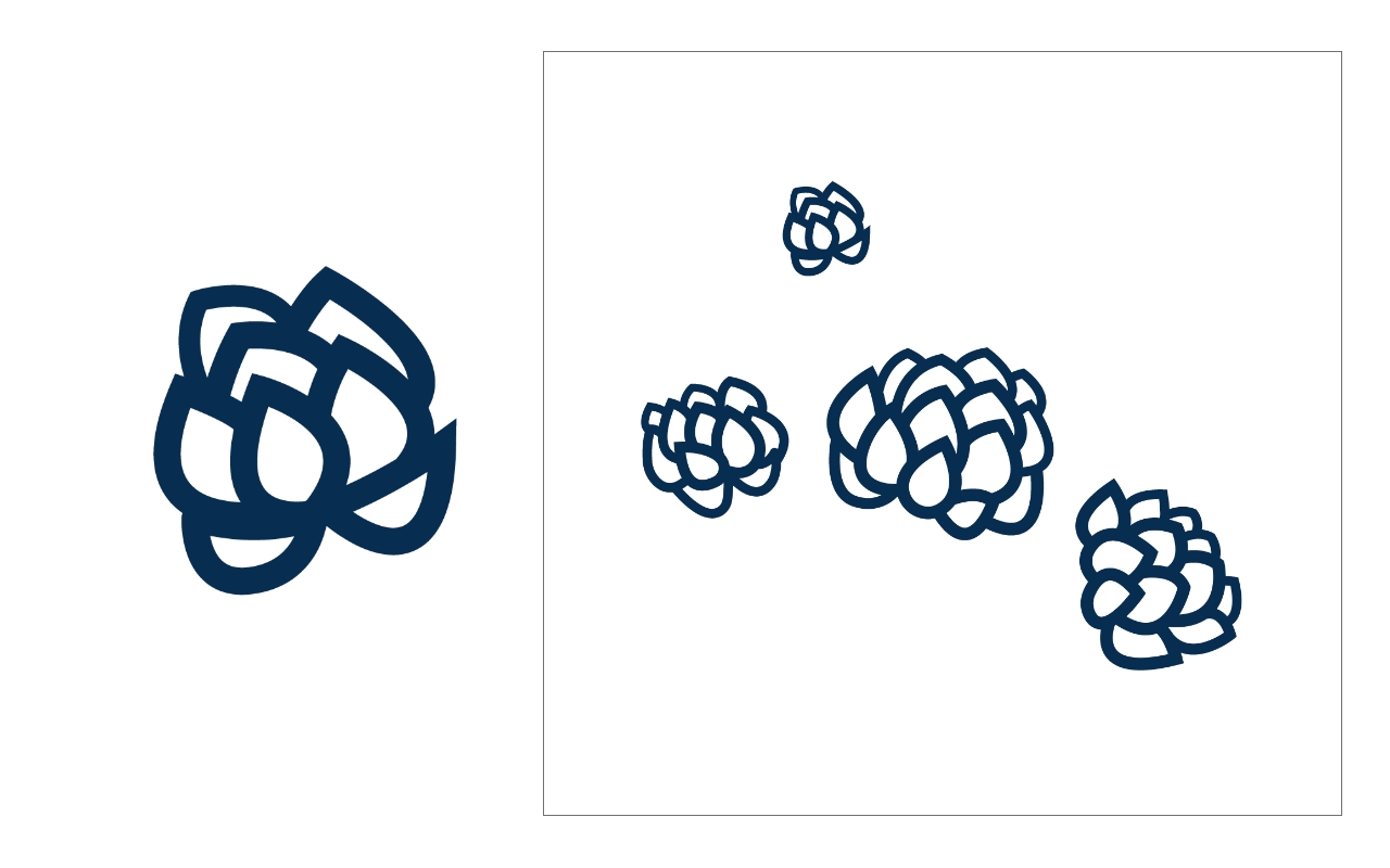 这时可以给部分叶片增加茎干的线条。这里整体看上去线条还不够“肉感”,因此我选择把图形整体缩小,在线条尺寸不变的基础上,整体的轮廓线就会看上去更粗壮。