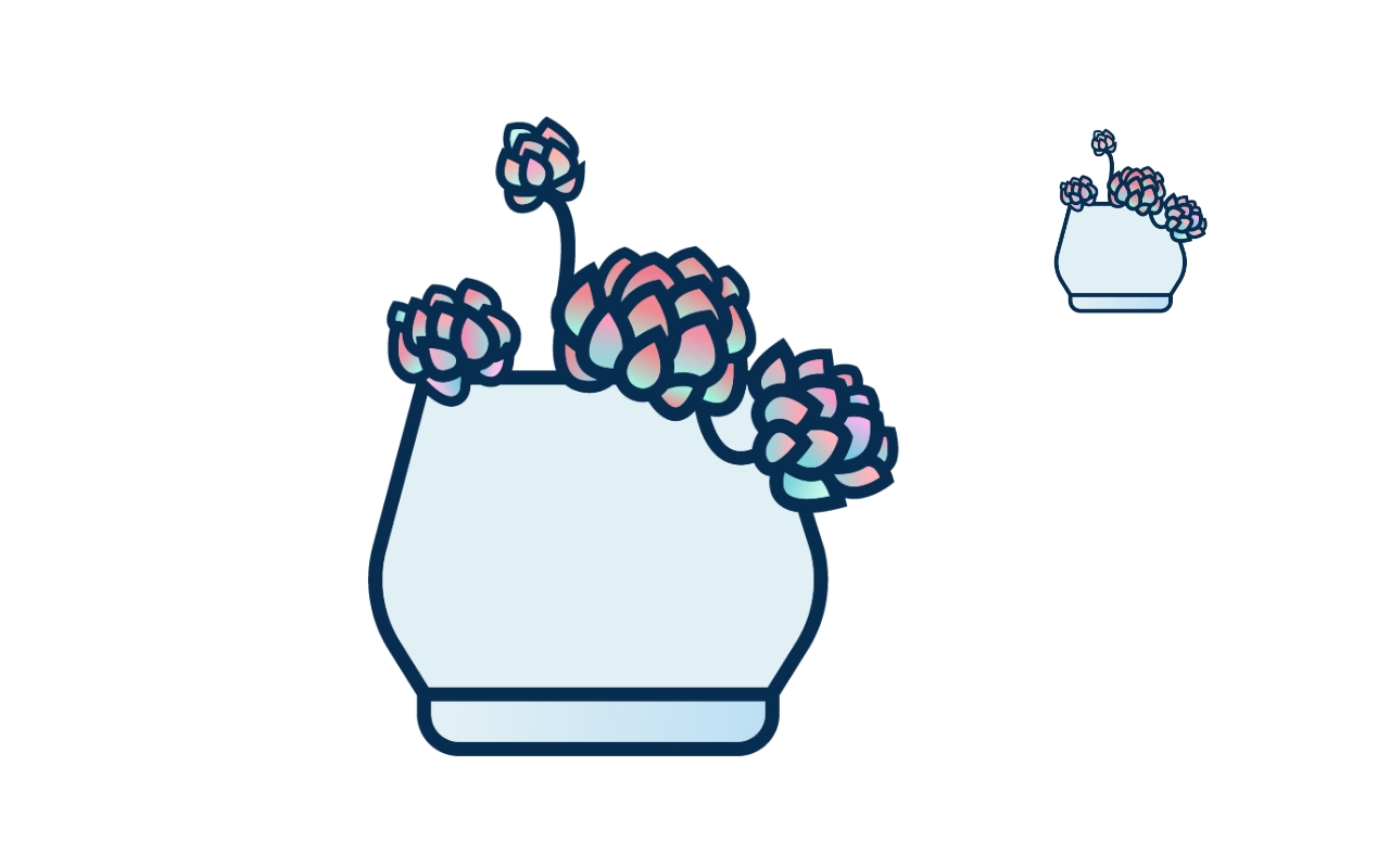 把容器放置与植物合适的位置,调配好它们之间的位置关系。然后采用形状生成器工具将彼此遮挡位置的线条删减。