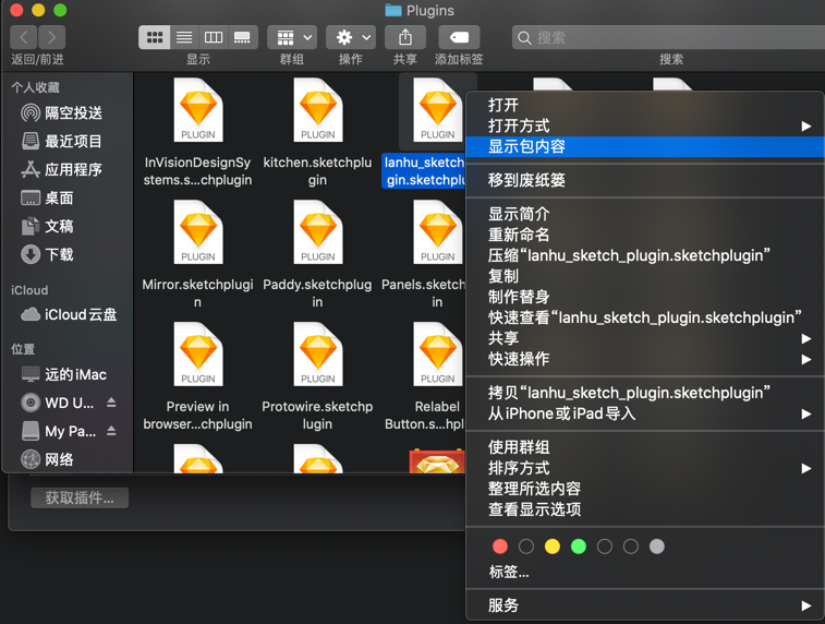 第二步:找到需要中文备注的插件,右键选“在访达中显示”