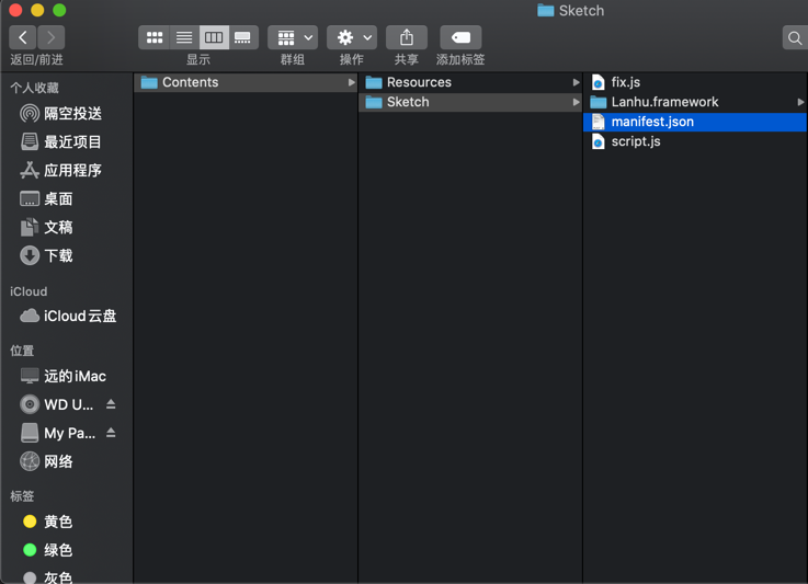 第四步:进来之后,忘文件夹里面点,找到sketch文件下面的“json”文件
