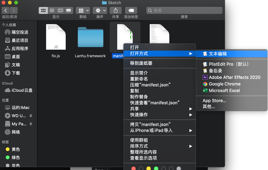 第五步:右键“json”文件,选择打开方式,文本编辑打开即可(当然也可以用其他的文本编辑器)