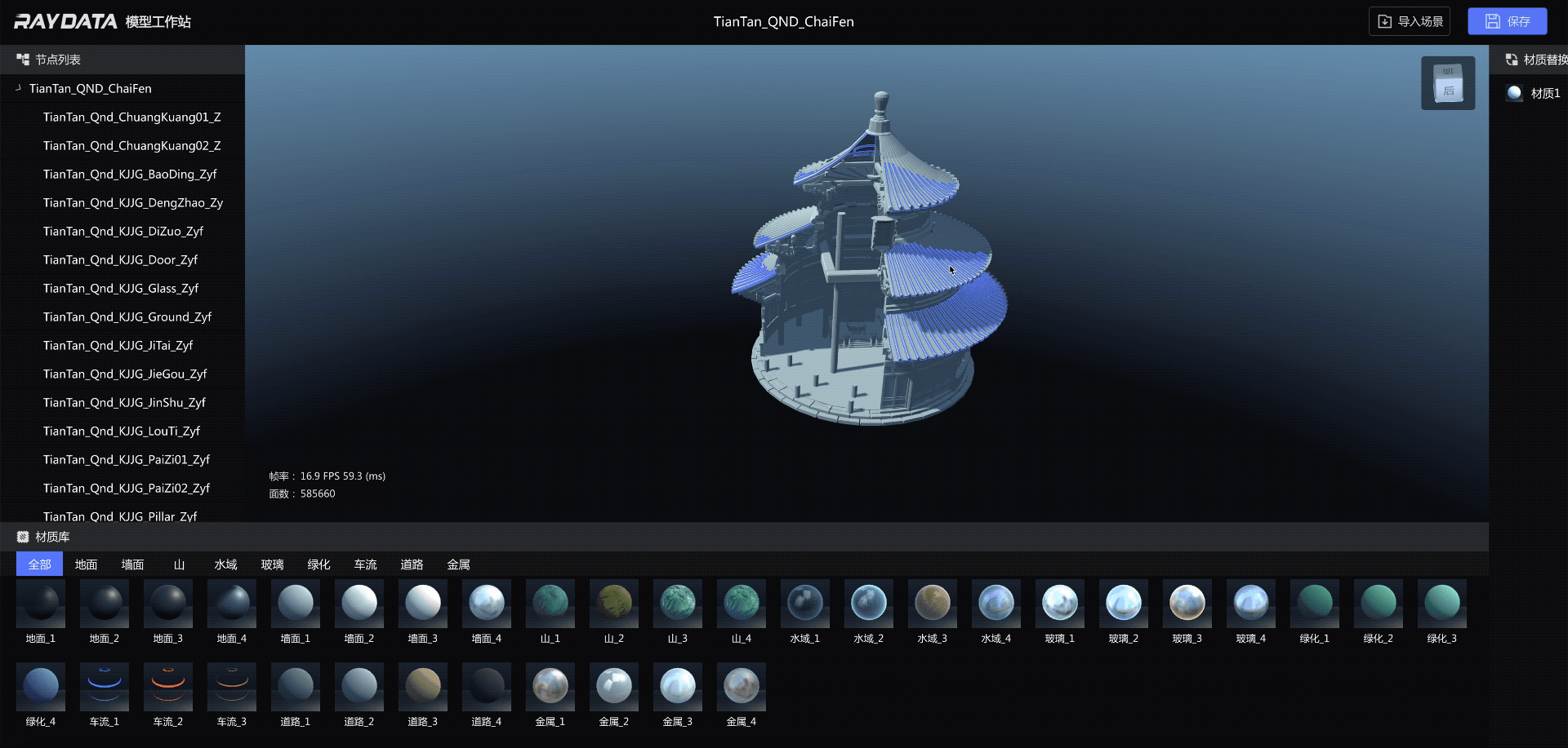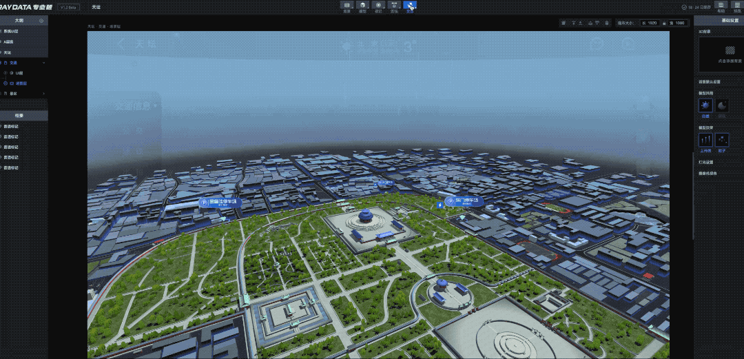 除了世界遗产,RayData专业版的模型库中提供了更多种类的模型和场景供用户直接使用,包括省级板块、城市、交通工具、楼宇建筑、公共设施等,同时也可以选择场景的昼夜样式,满足各种各样的模型风格需求