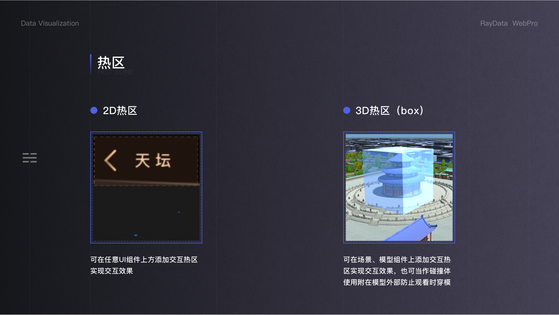 同时我们可以为场景或模型添加3D-BOX热区,方便进行之后的交互事件