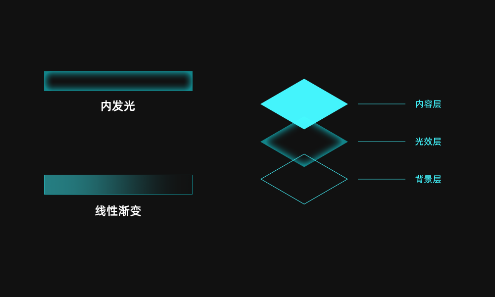 光效设计的最常见的四种设计形式为:渐变、光晕、色阶、高光。每一种光感设计样式都有不同的效果,接下来我们通过实际的例子来看一下每一种光效的视觉效果。