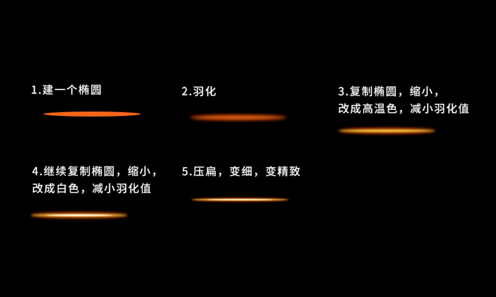 技巧:利用径向渐变工具,对椭圆进行压扁,透明度之间的弥散的距离进行压缩。