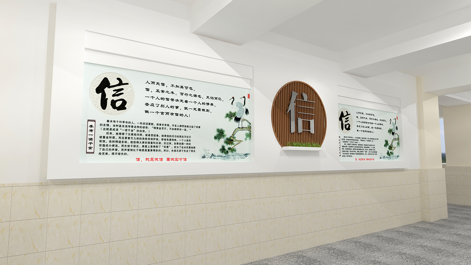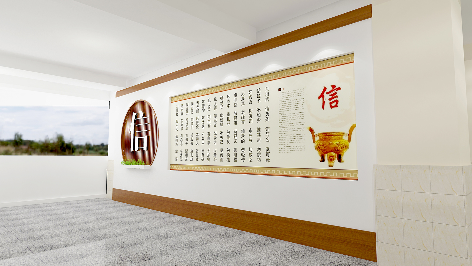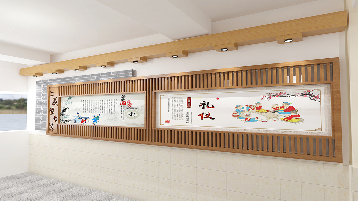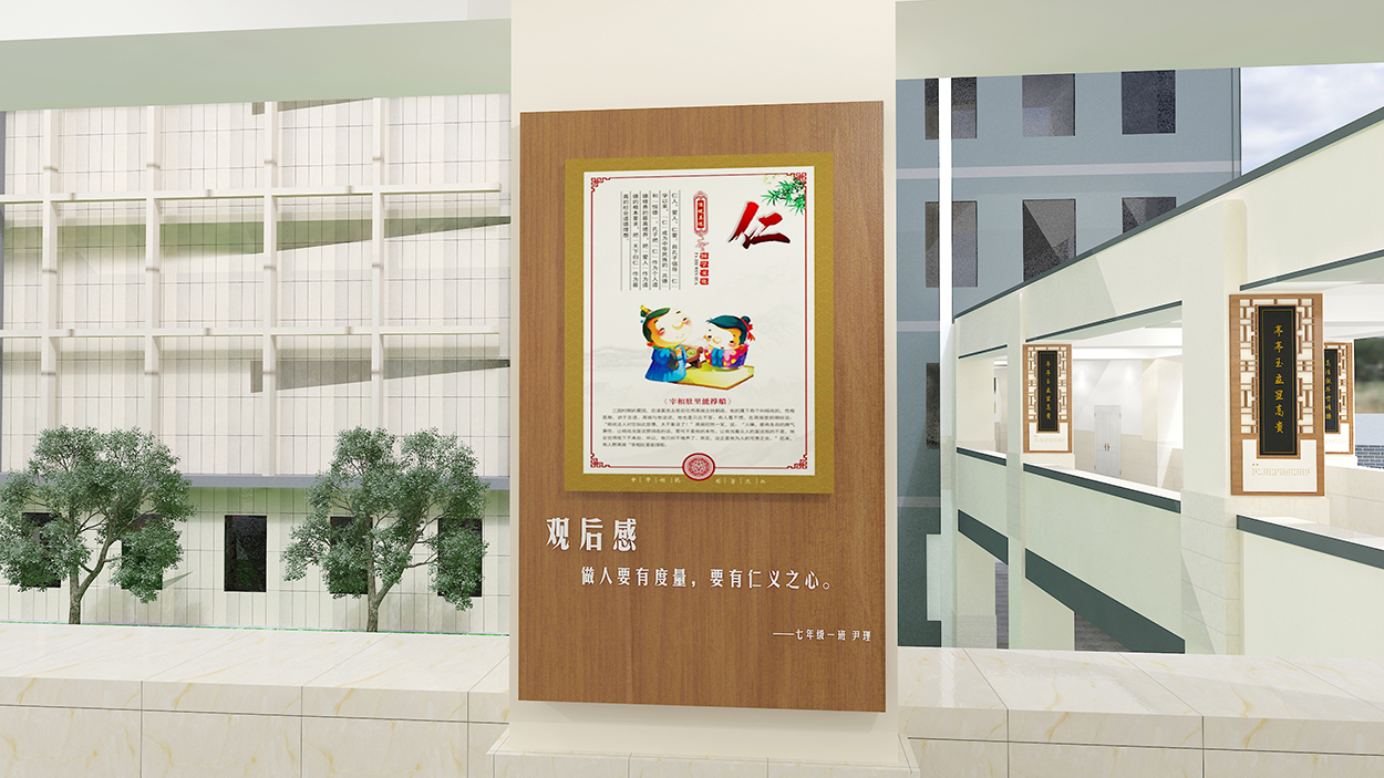 教学楼覆盖内容“诚文化”和“仁、义、礼、智、信”文化: