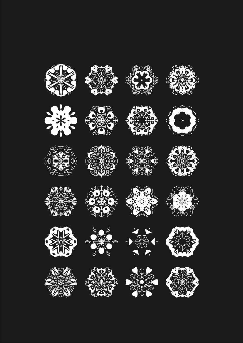自动生成的雪花会整齐的摆放在新添加的页面中。基于三幅源图做出来的雪花依次如下: