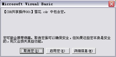 这个插件内嵌在一个cdr文档中,避免了用户安装插件的麻烦,只要打开这个名为“【CDR共享插件001】雪花.cdr”的文档,就可以立即使用了。