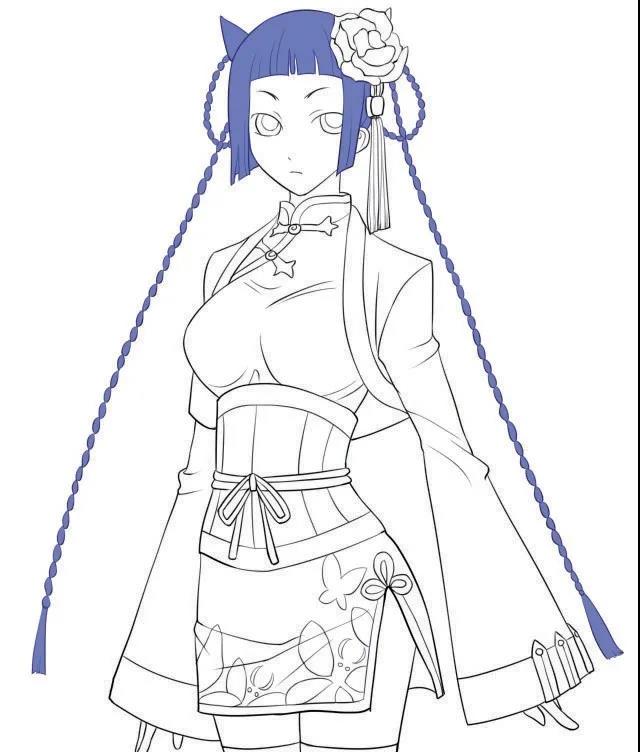 09 为人物的服饰添加图纹作为装饰,人物的线稿描绘完成。