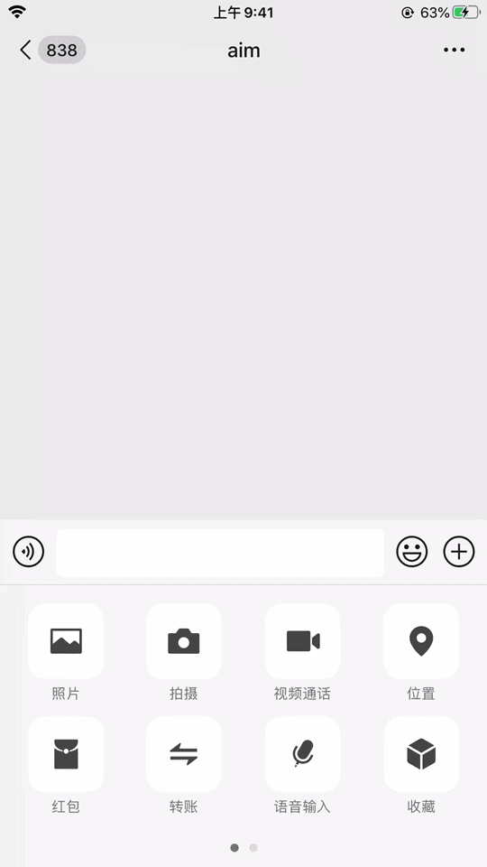 例如ios微信的聊天界面,右下角的添加功能模块中,所有的小功能页面都是由下到上弹出页面,交互方式上保持了统一性,符合用户的心理预期,使用时候就不会很突兀。