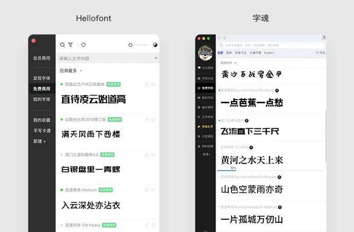 用过hellofont与字魂两款字体软件的应该会有很明显的感受,尤其是网络不好的情况,前者下载一款字体时没有任何进度提示,只有当下载成功后前面的图标会显示成点亮的对号状态,而后者点击某一款字体后便会有下载进度,这便是状态可见原则的体现,实时对用户行为进行反馈,让用户无需多余的思考。