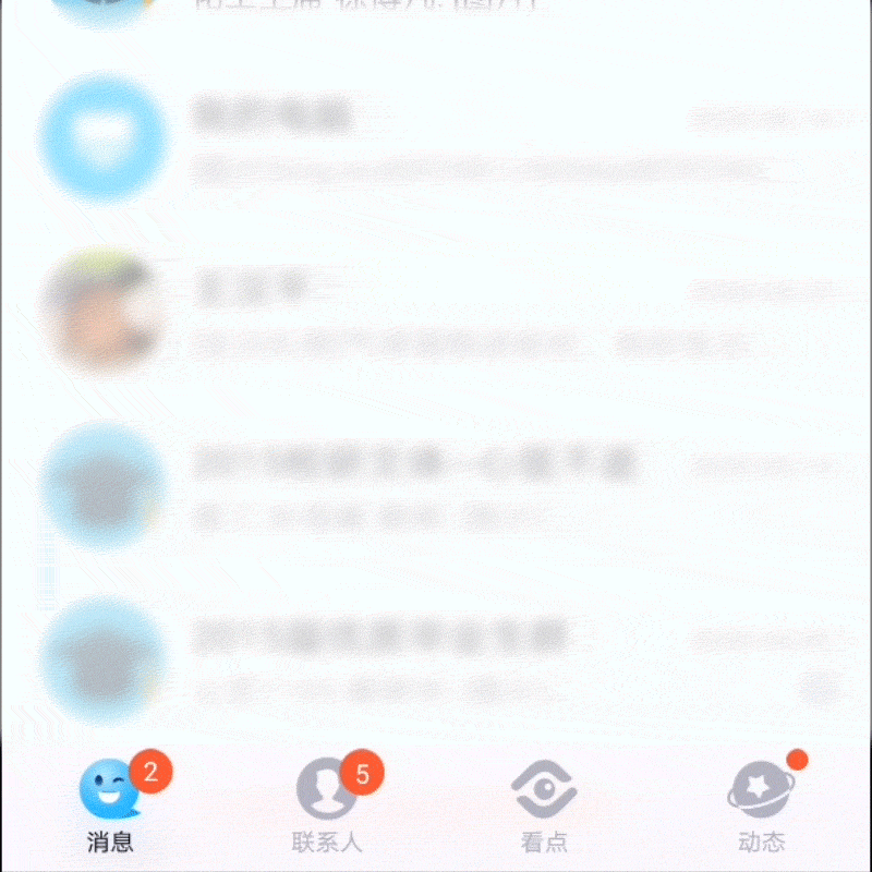 手机QQ在前几天上线一个标签栏的情感化设计,当用户按住标签栏任意icon的同时往上滑动,所有标签栏中的icon都会产生凝视触点的效果,而且这种凝视带有拟人化,通过icon中五官、形态以及轻微偏移来传达;