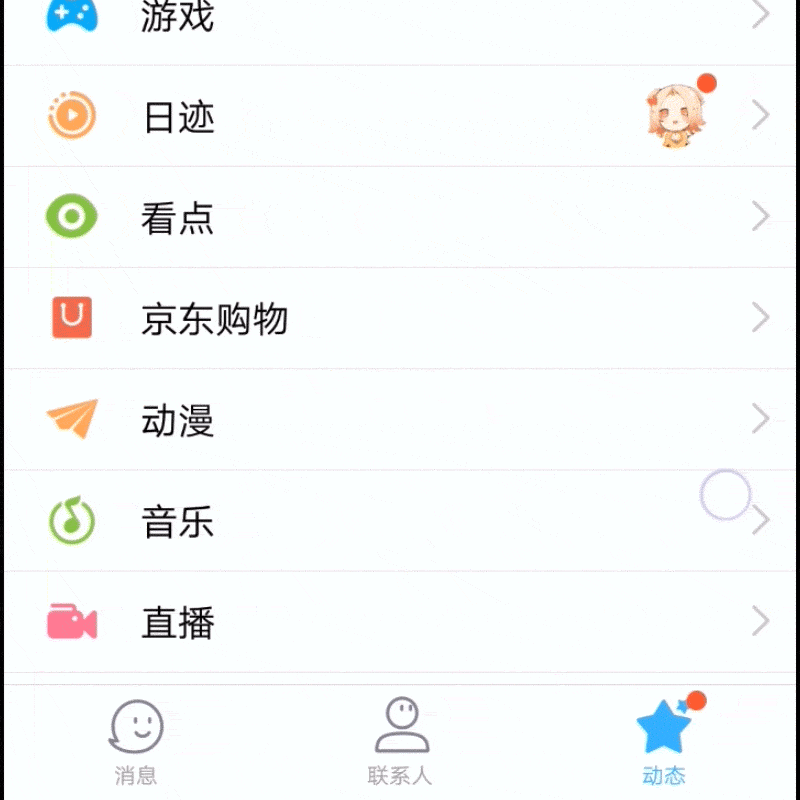 很久之前手机版QQ就出现了一个「去除小红点」的设计,对众多具有强迫症的用户来说就是福音,用户可以把小红点拖出去,松手后小红点就会伴随着一阵烟雾消失了,这个动效加入了一定的阻力和粘性效果,这样设计的主要原因是小红点这个UI元素的面积太小了,用户拖动时几乎无法看到这个小红点,因此加入阻力和粘性效果可以在拖动过程中增加小红点的展示面积,让用户可以获得这一动作的反馈,这样还可以避免用户误操作意外拖动导致去除小红点。