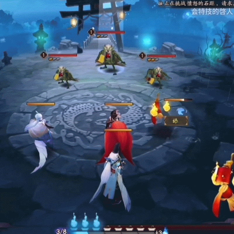 此外,这种凝视现象在游戏中也很常见,例如热门手游「阴阳师」中,当一个式神前进向对手发起进攻时,队伍中的其他式神都会将脸转向他,并保持持续的凝视,这种效果在原本就有角色的游戏中可以传递很强的情感化,仿佛在告诉队友「兄弟你大胆上前干吧 我们都在后面支持你!」,在这样的队伍中可以感受到很强的团队凝聚力;相反地,如果我们拿出另一款手游进行对比,例如「梦幻西游」中的队伍就不够团结了,每个角色都自顾自上前战斗,仿佛在说「你打你的 干我屁事」;