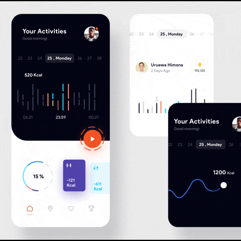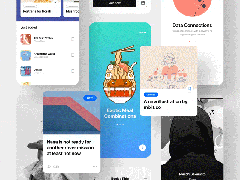 这两种速度差不论是何种物理原理造成的,本质都是因为不同物体有着远近不同的层次,因此速度差都可以在原本扁平的视觉环境中产生较强的层次感和视差感受(案例来自Dribbble)。