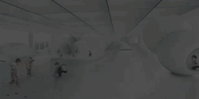 未来,这里还可以是儿童娱乐的场景,通过对阶梯的收纳,转变为大型空间。选取丘陵和球体两种形体结合充气复合软性材料,通过充气量增减,对丘陵及球体的体量和大小做出改变,来调节空间的层次感。内置软性龙骨,进行支撑和荷载,配置智能灯光体系,随着场景的改变,表面的温度和颜色也会产生相应的变化。此外,通过主题场景的变化,孩子们除了可以进行单纯的攀爬穿梭外,还可以选择海洋探险、宇宙巡游等不同场景进行音乐熏陶、空间体验、绘画创作等多方面的丰富体验。