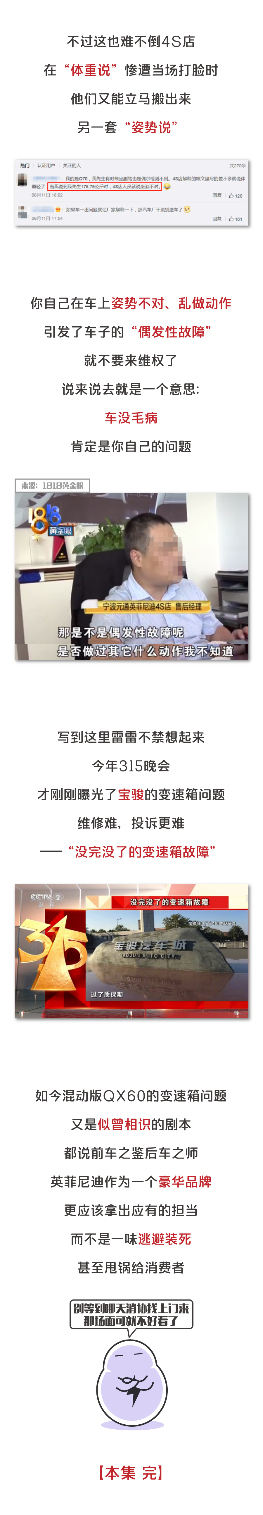 最近各大汽车质量投诉网站上,出现了很多关于英菲尼迪QX60混动车型的变速箱投诉,有的车主换了好几个变速箱,车子还是修不好,4S店简直都变成了自己的第二个家......