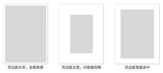 页边距能起到吸引读者并加强二者互动的重要作用。页边距作为印刷物的框架,就像是一个容器。若太窄,就会失去对页面内容的控制,框架的作用被遏制,视线趋于分散(页面越大,影响越大;若太宽,页面内容又会显得无关紧要。