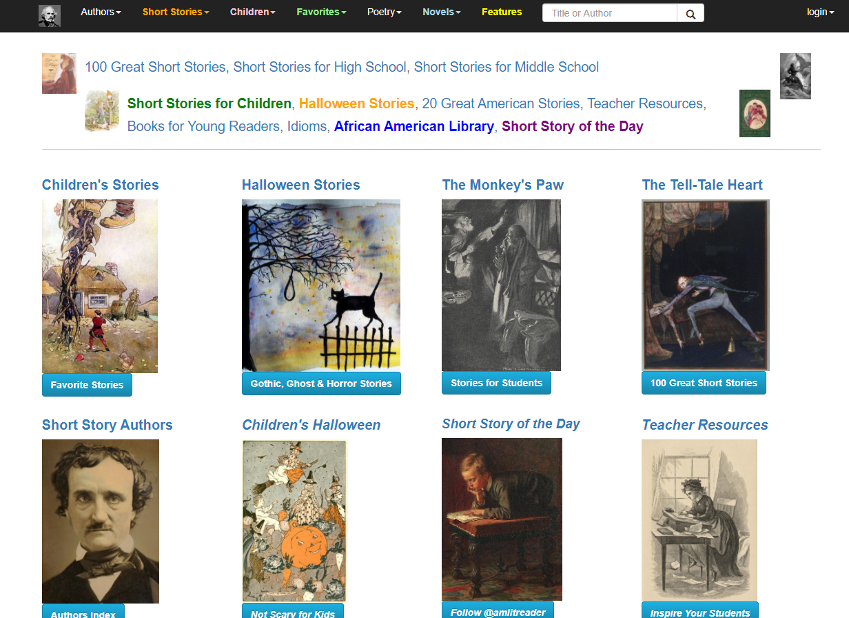 尽管名为“american literature”,但实际上除了西方儿童文学经典,网站还收录了很多来自北欧/日本/中国等等其他地方的民间传统故事,内容以文本为主配少量插图。