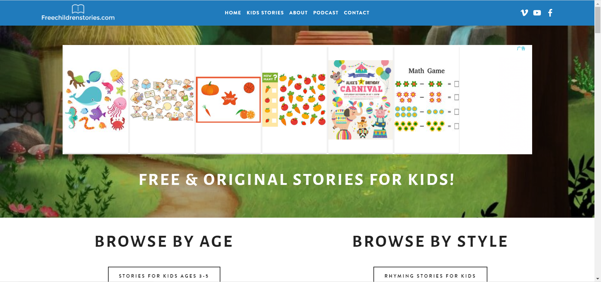 网站首页有根据年龄阶段做的故事分级和简单的主题归类