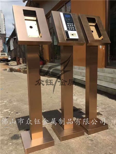 金属拉丝钛金不锈钢门口机立柱 可视对讲不锈钢支架