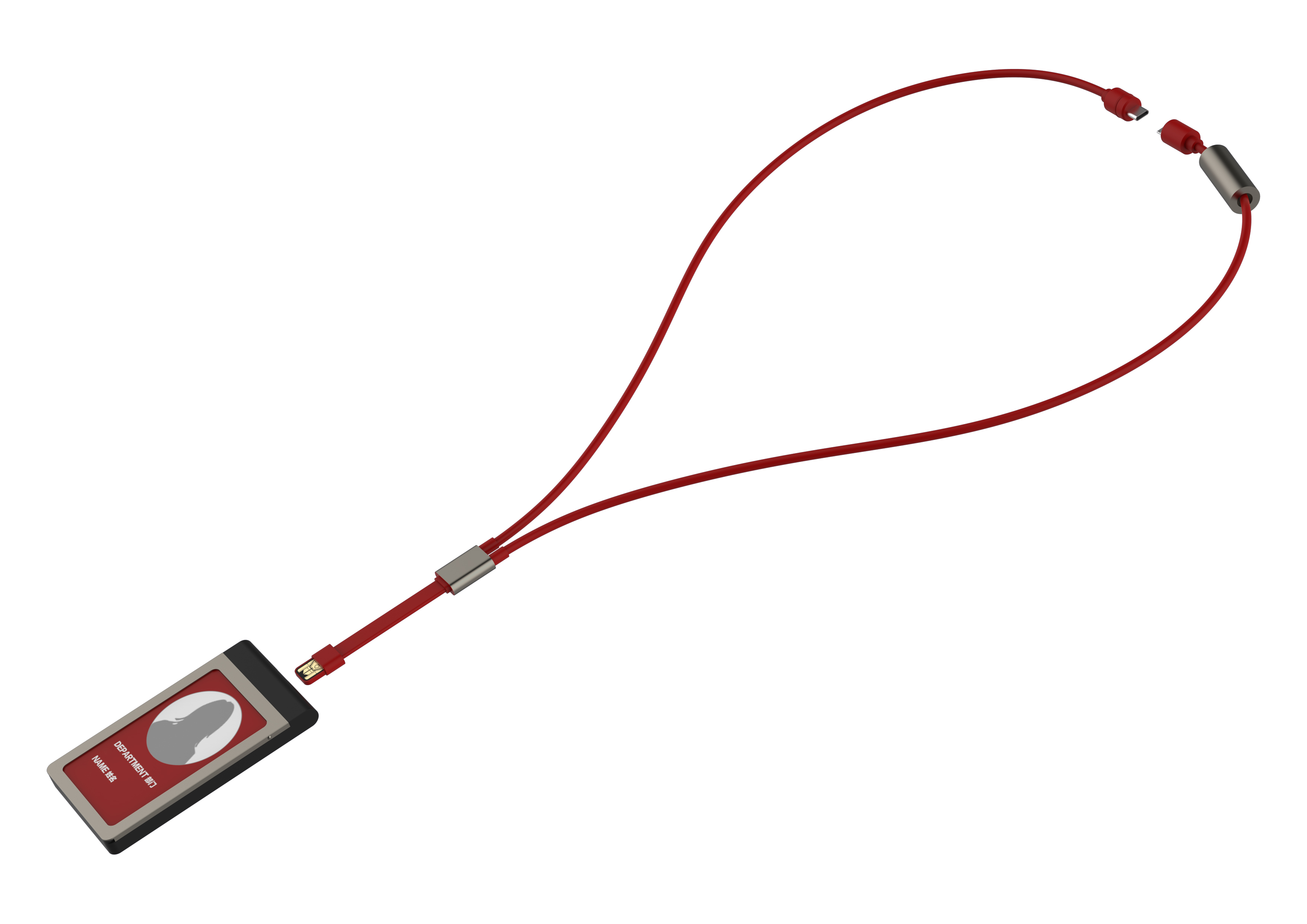 无论在会展活动,还是日常办公,证件牌和门禁卡是最常用的随身设备。在活动中,经常急需为手机补电,移动电源和充电线必不可少。本产品巧妙的将证件信息卡片、门禁卡仓、移动电源和充电线4合1功能整合设计,不仅减少了随身设备的数量和空间,也兼具了美观和实用性。内置的2500mAh 高密度聚合物锂电池足够小巧,满足补电需求的同时使证件牌轻薄便携,柔软亲肤的TPE材质挂绳式双标准充电线,美观时尚,让用户无需再担心有电无线的尴尬情形。