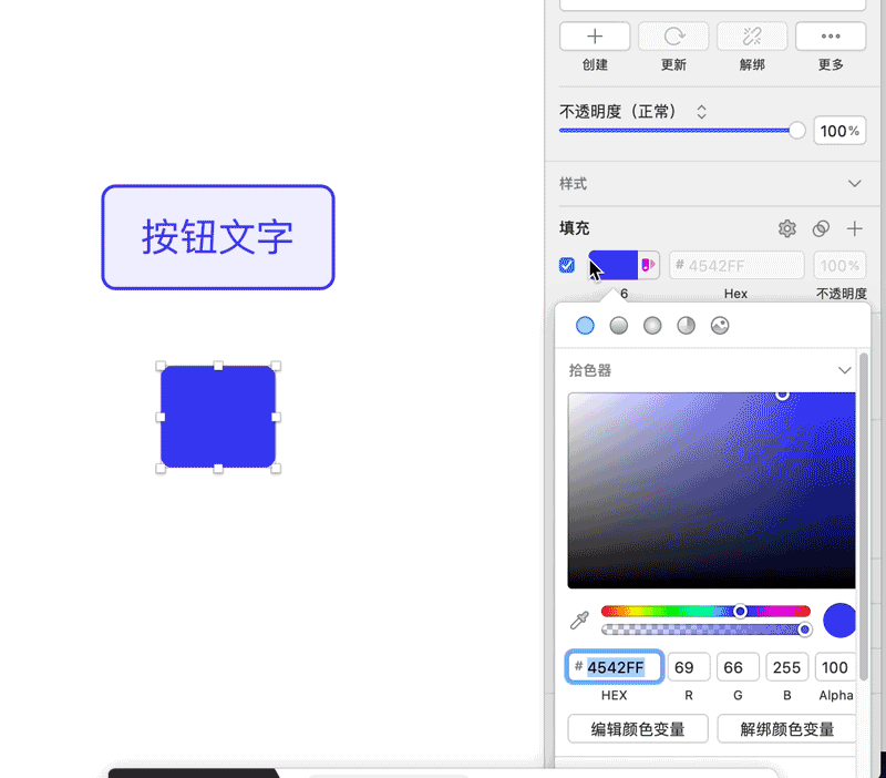 优势:假设同一颜色A在填充、边框、文字不同场景都有使用,之前是没有办法通过一次性的修改来完成全局迭代的,颜色变量的更新很好的解决了这个问题,更接近原子设计了;