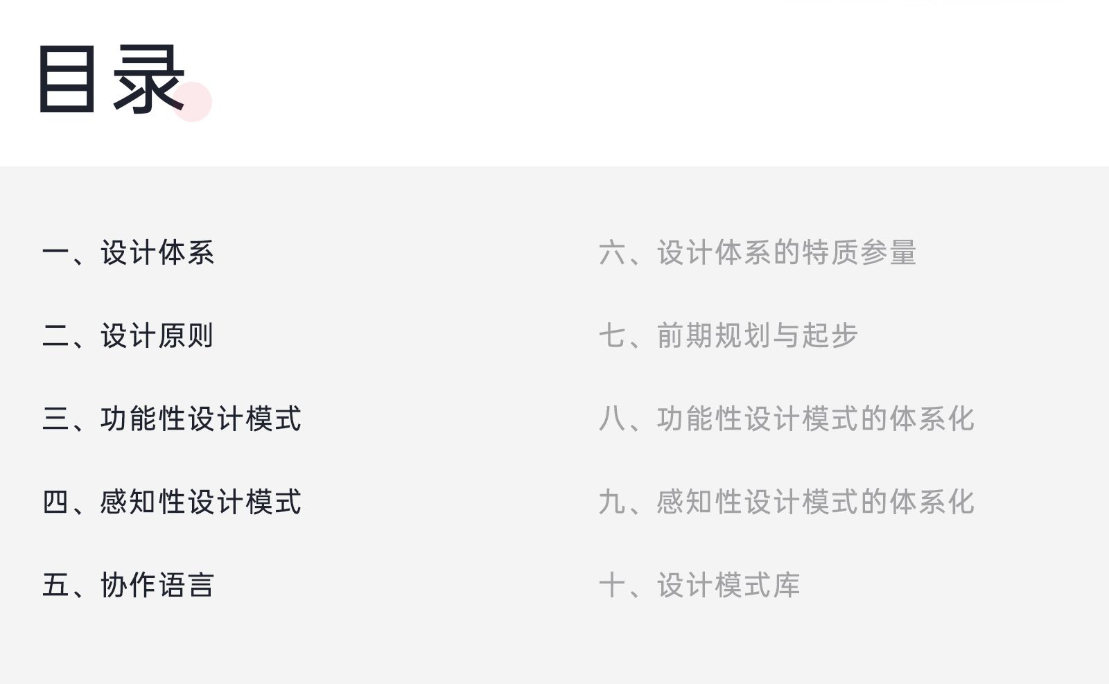 书中一共十个章节,本次分享前五章,主要是设计体系相关概念的梳理。