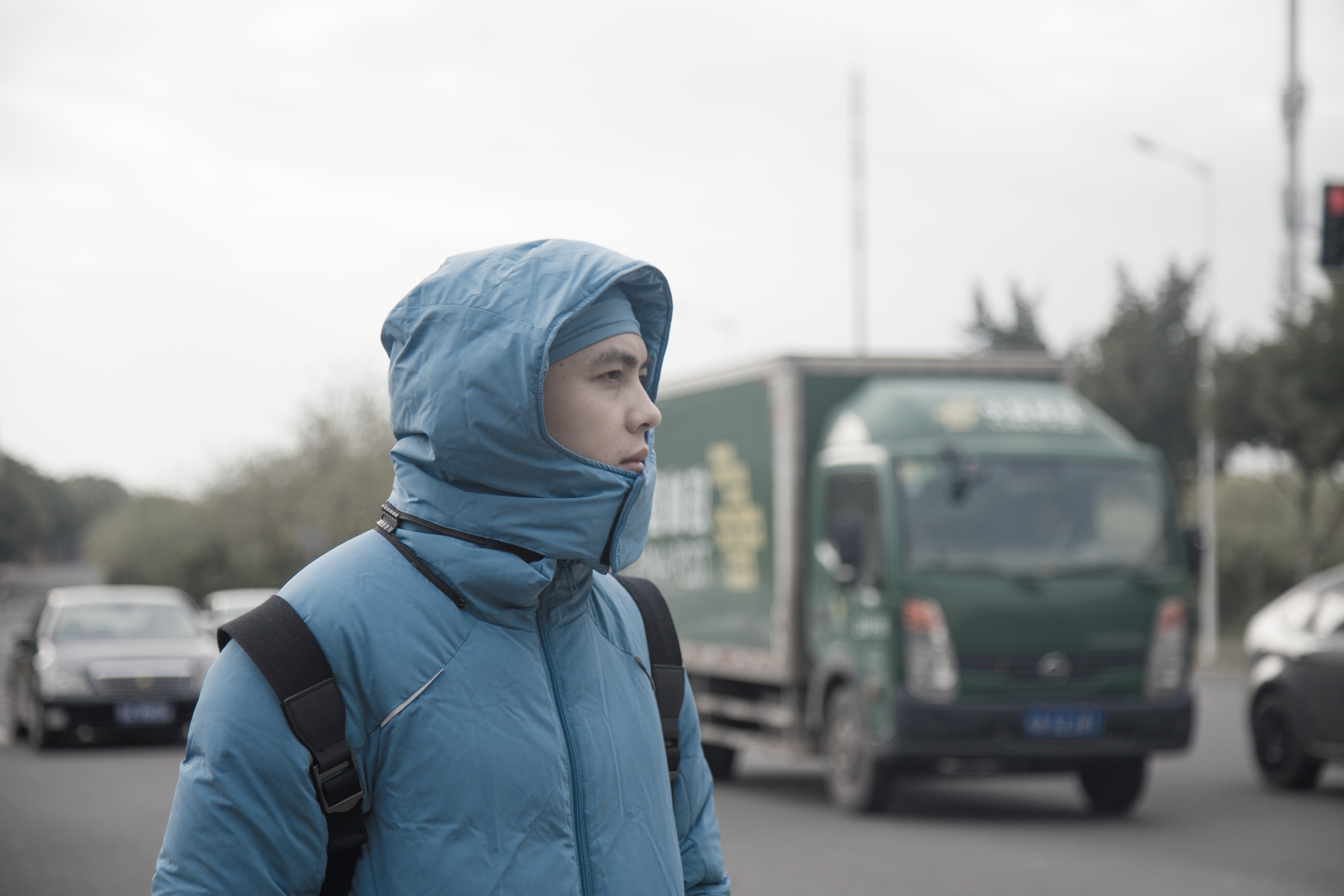 这是一款拉链套帽的外套,考虑了冬天外出行走时穿着的安全。它能通过调节头部的转动,减少头部在行走时受到的阻力。采用双向移动式拉链随动技术,缝制可左右转动的连体帽羽绒服和棉服。针对骑行或者步行经过十字路口的安全性要求而设计,不遮挡视野,为安全出行提供保障。
