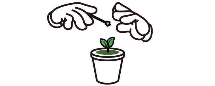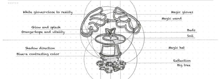 至于凸显委托人在教学活动中的价值,我们则是从哈利波特中得到启发,决定使用魔法师的概念来完成这个信息的传达。初始的稿件中使用了一个普通的花盆来作为幼苗的容器。