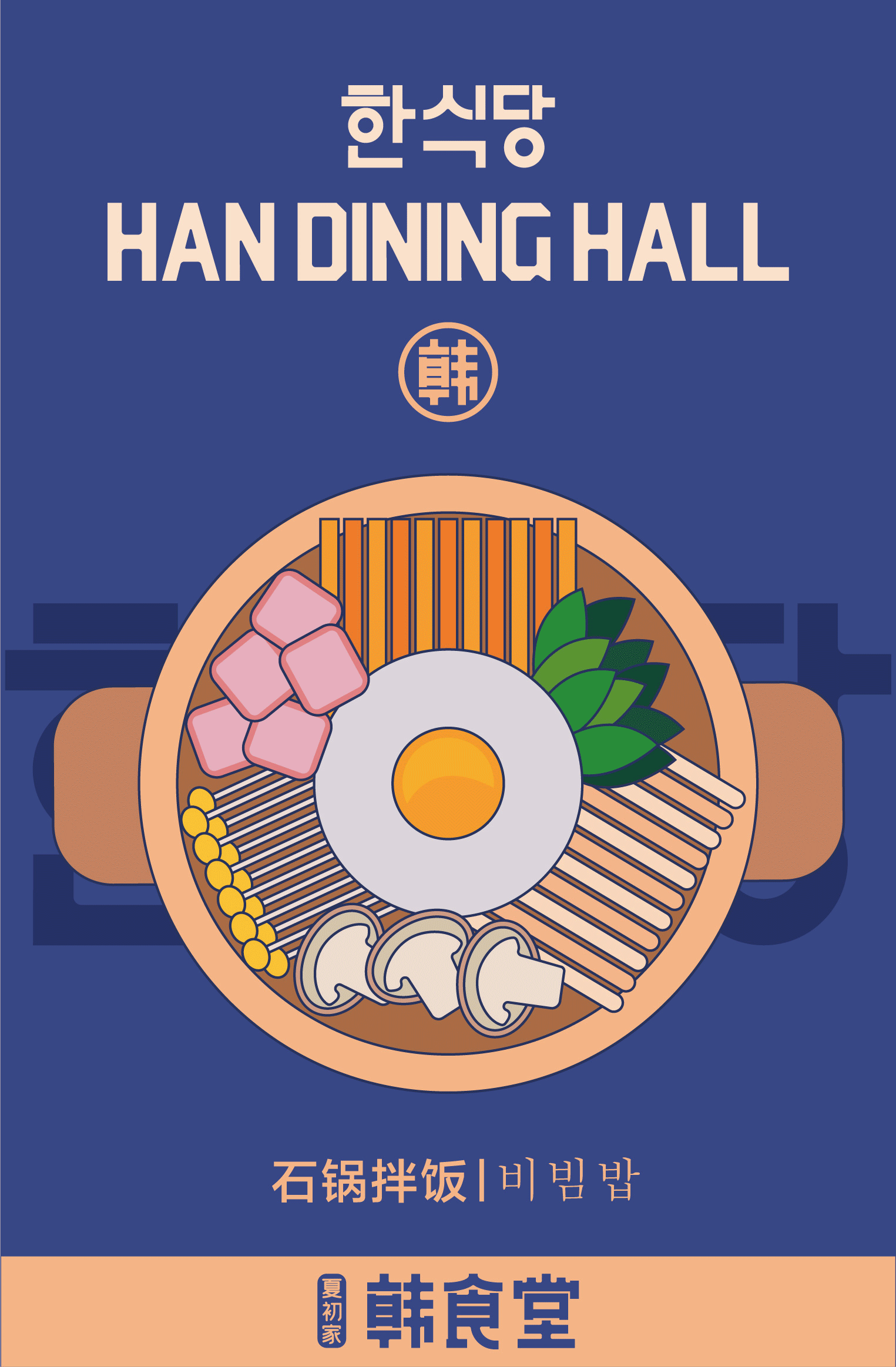 夏初家新店logo升级,一改往日书法字体“夏初家”,提炼“韩”为核心视觉,让人看到就记住并传递出韩食堂“韩餐”的明确定位,让大家洗脑式记住吃韩餐就是韩食堂。