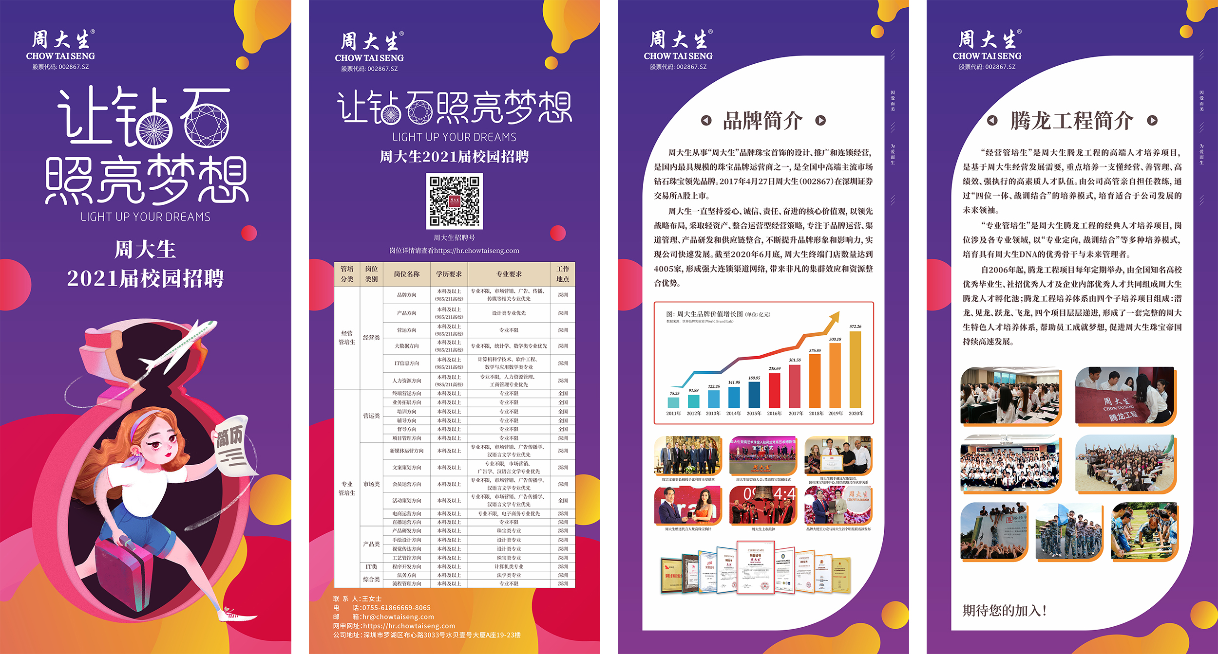 入职周大生已2年有余,第一次接到HR部门2021届校园招聘项目,整套设计从海报到折页延展,与大家学习交流......