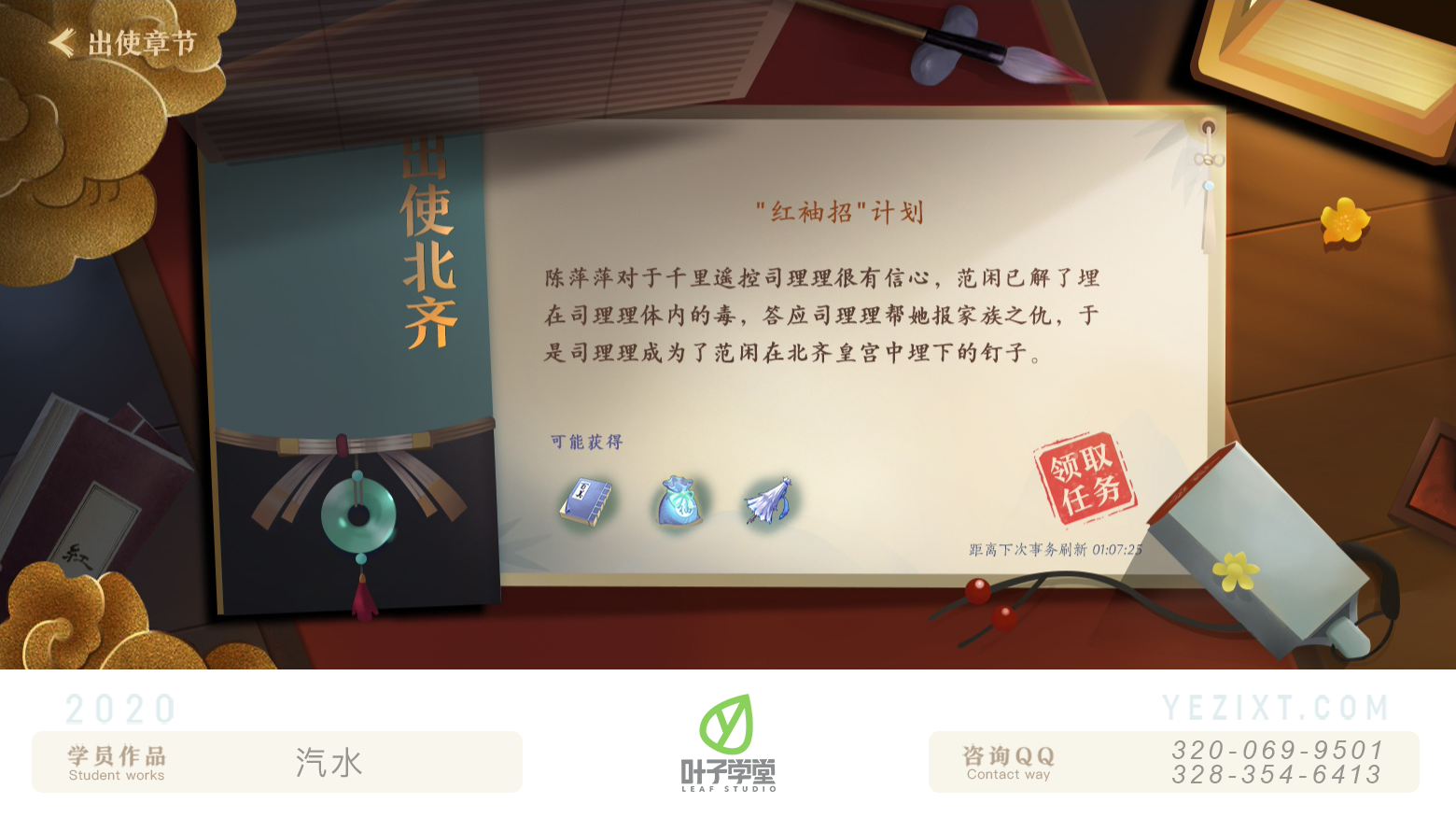 上面这张界面是汽水同学做的《庆余年》系列套图之一,领取任务的二级界面想要做的有故事感,那就要贴合“主题”,“领取任务”由常规的按钮转变成盖章的形式。