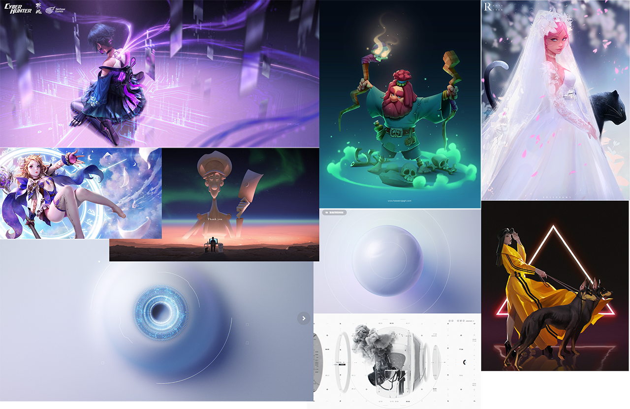 而上面的这些原画与场景源自哪里呢?大部分产出于artstation与behance,在外网的图,大家得凭缘分才得一见同样的图。下方这组图就是那六张界面的原画场景素材。