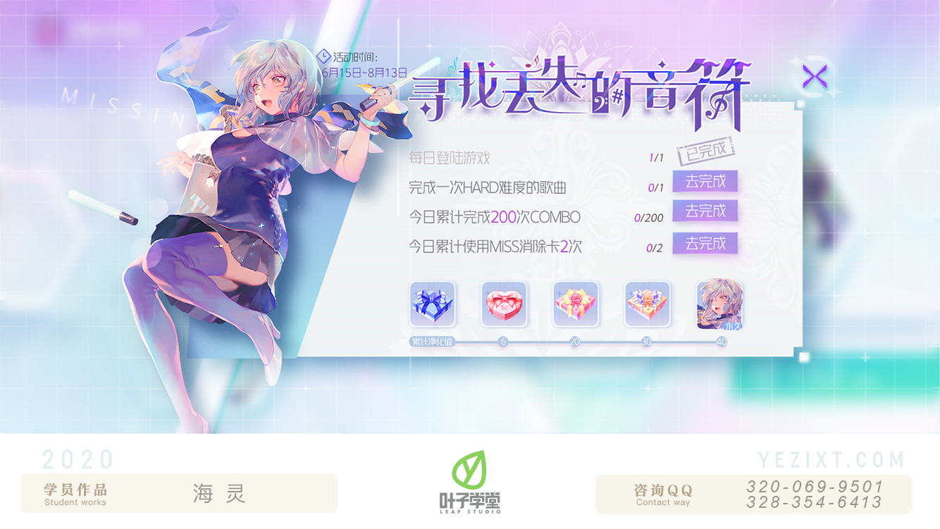 叶子在教学初期,更多传授的是设计的底层理论,比如如何从平衡构图中找到突破,视觉的层次递进,功能优先级,先定 “ 主题 ”,根据主题来找相关素材,进行一整套UI的延伸设计。