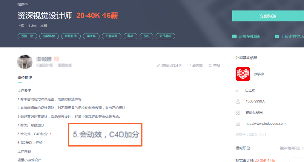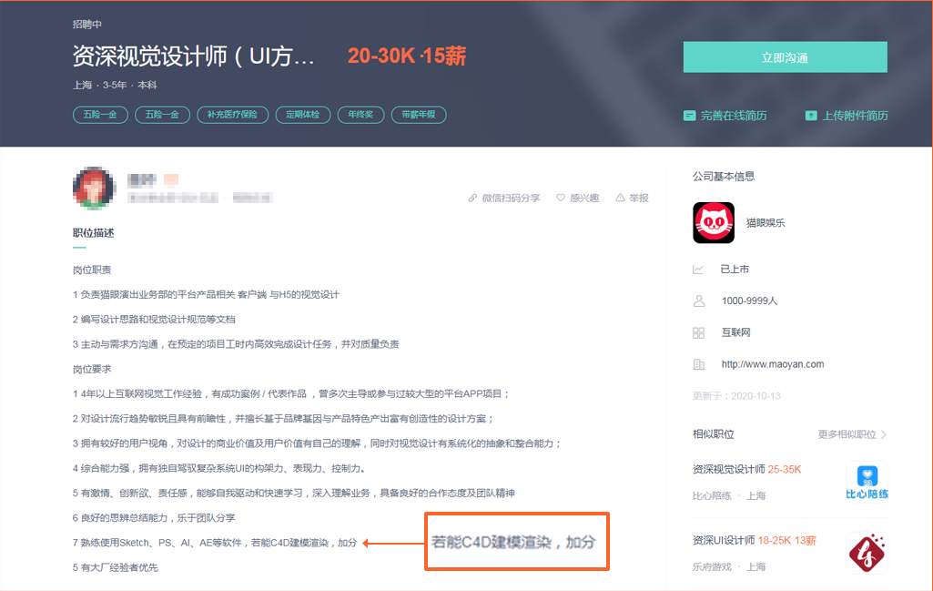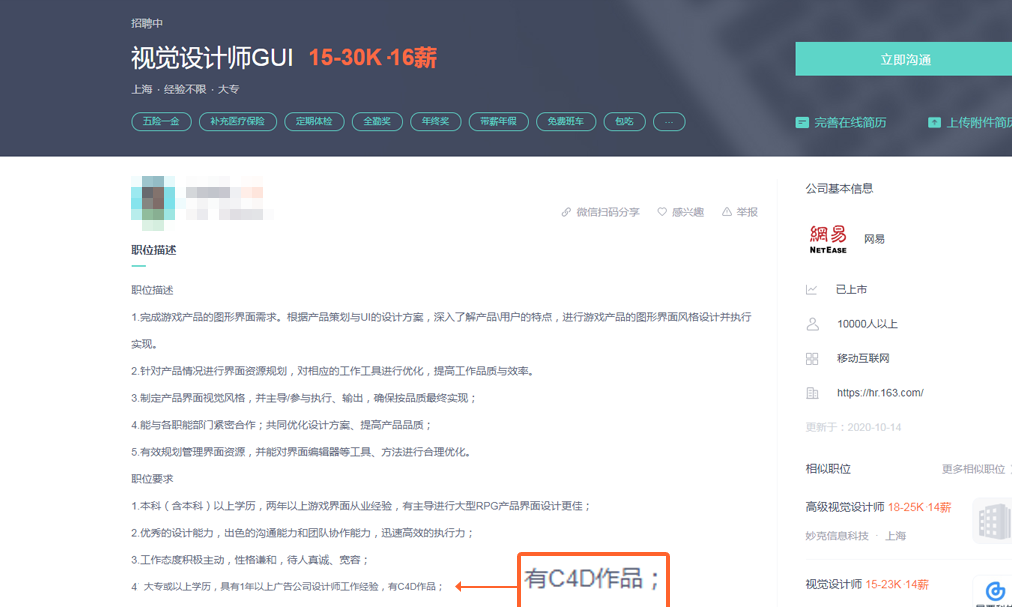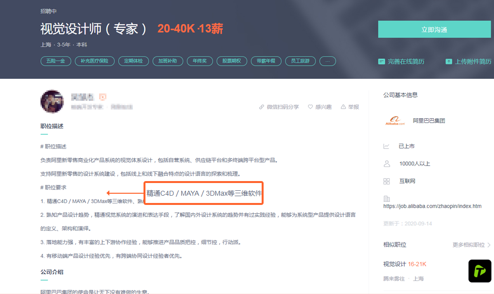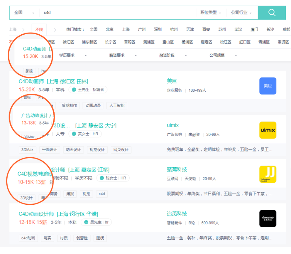 传统平面设计市场饱和且薪资低,反观大厂却都在招C4D,大厂都缺人,说明行业有巨大的需求!