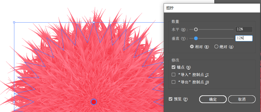 4.效果-扭曲和变换-扭拧,设置合适的参数。选中中间的图形可以改变中心点,达到不同的效果