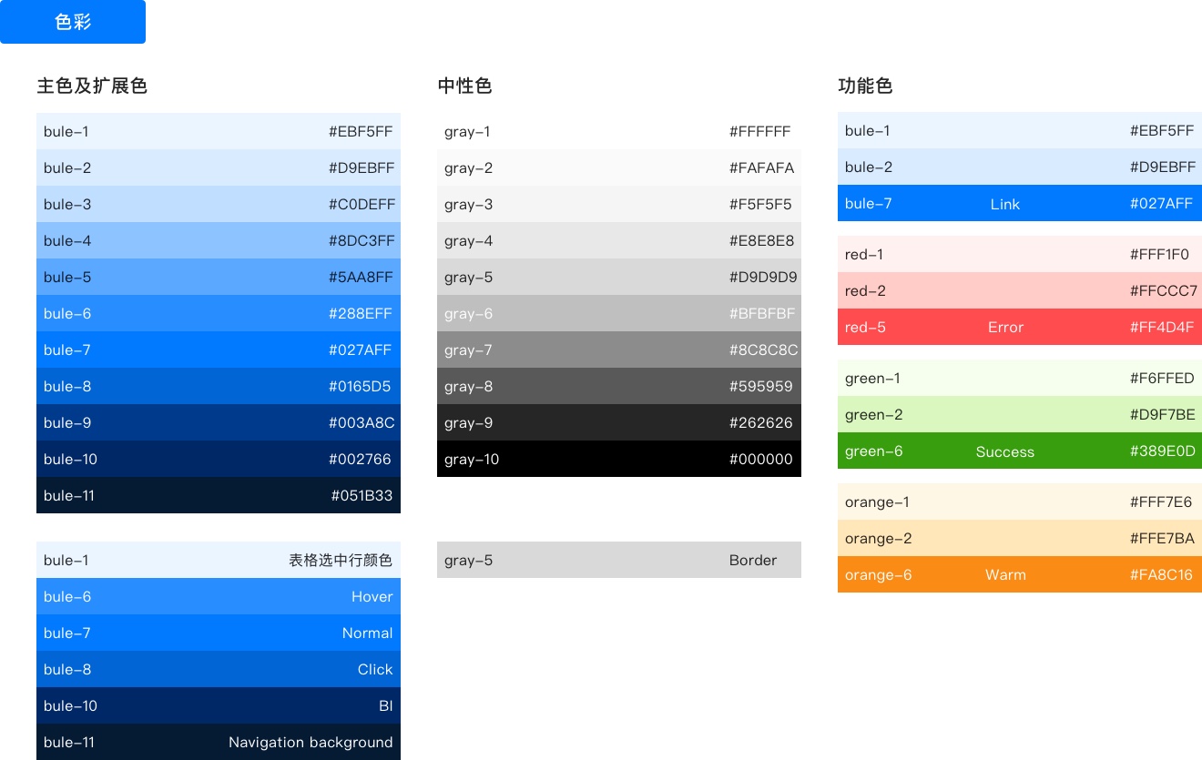 B端产品和C端产品在用户方面有一个很大的不同,B端产品首先面向的是企业老板,所以B端产品第一层需要满足企业老板(决策者)的需求,同时还要满足使用者(B端产品根据工作角色划分,使用者很有可能是不同的身份)的需求;而C端产品面向的是个人用户,做到优质的用户体验和用户留存就可以持续运营。这就决定了两者之间所要解决的用户体验的差异,C端产品客户即使用者,以直接满足使用者本身的体验为主;B端产品则需要服务好客户和使用者两者双方。然而,B端产品的客户和使用者双方需求却并非时时一致。作为以SaaS或PaaS的形式提供服务的供应商来说,对设计师而言,还需要考虑到平台本身的基础设计和不同客户定制化需求之间的差异。我理想中一个优秀的B端产品应该是基础设计规范理性且灵活的,既能保证基础界面的整洁简单,又能让复杂的业务操作高效。以下内容是本人及团队在过去一段时间里复盘一个企业服务后台招制作的设计规范,抽空分享,希望大家相互学习,指正。