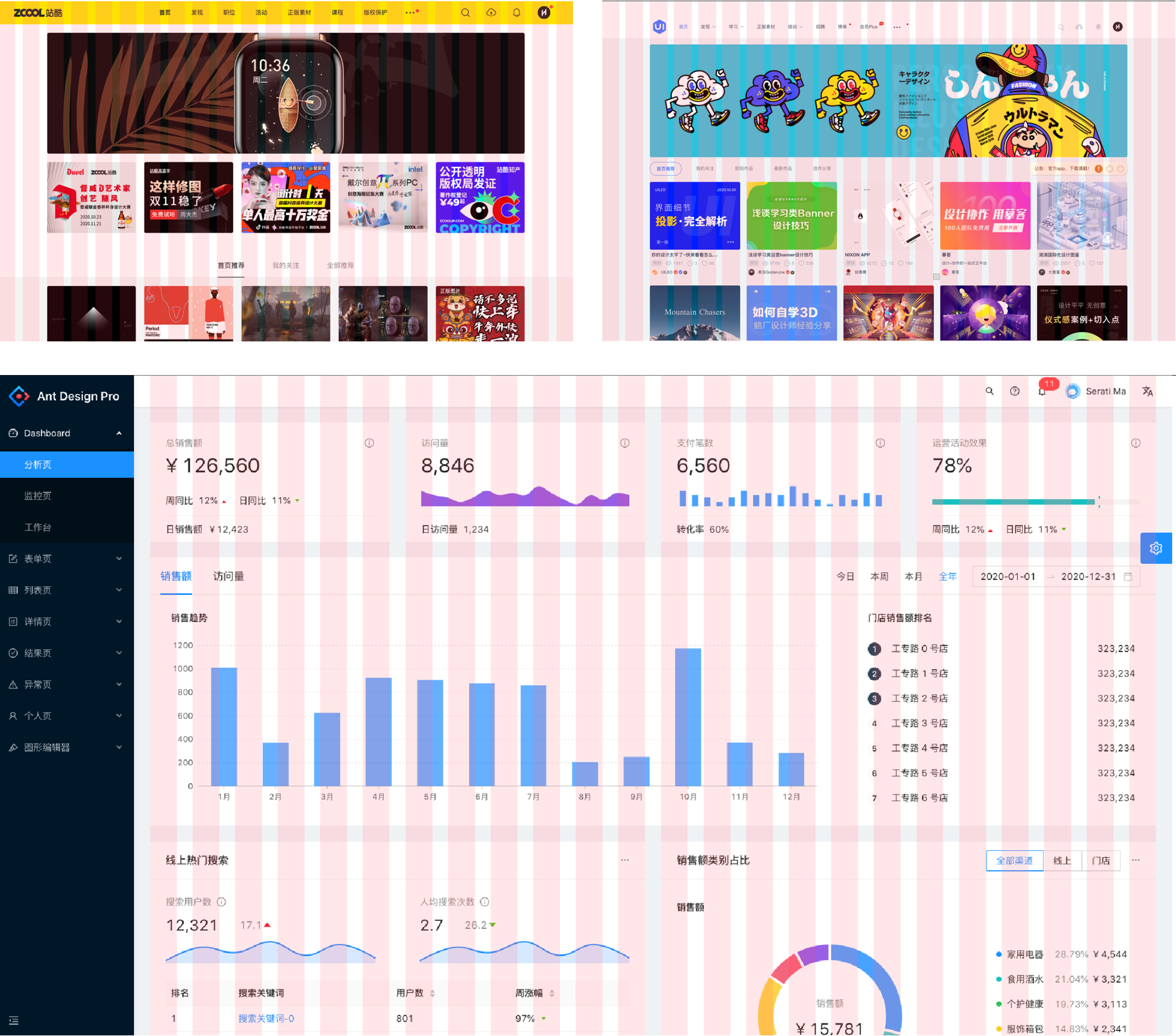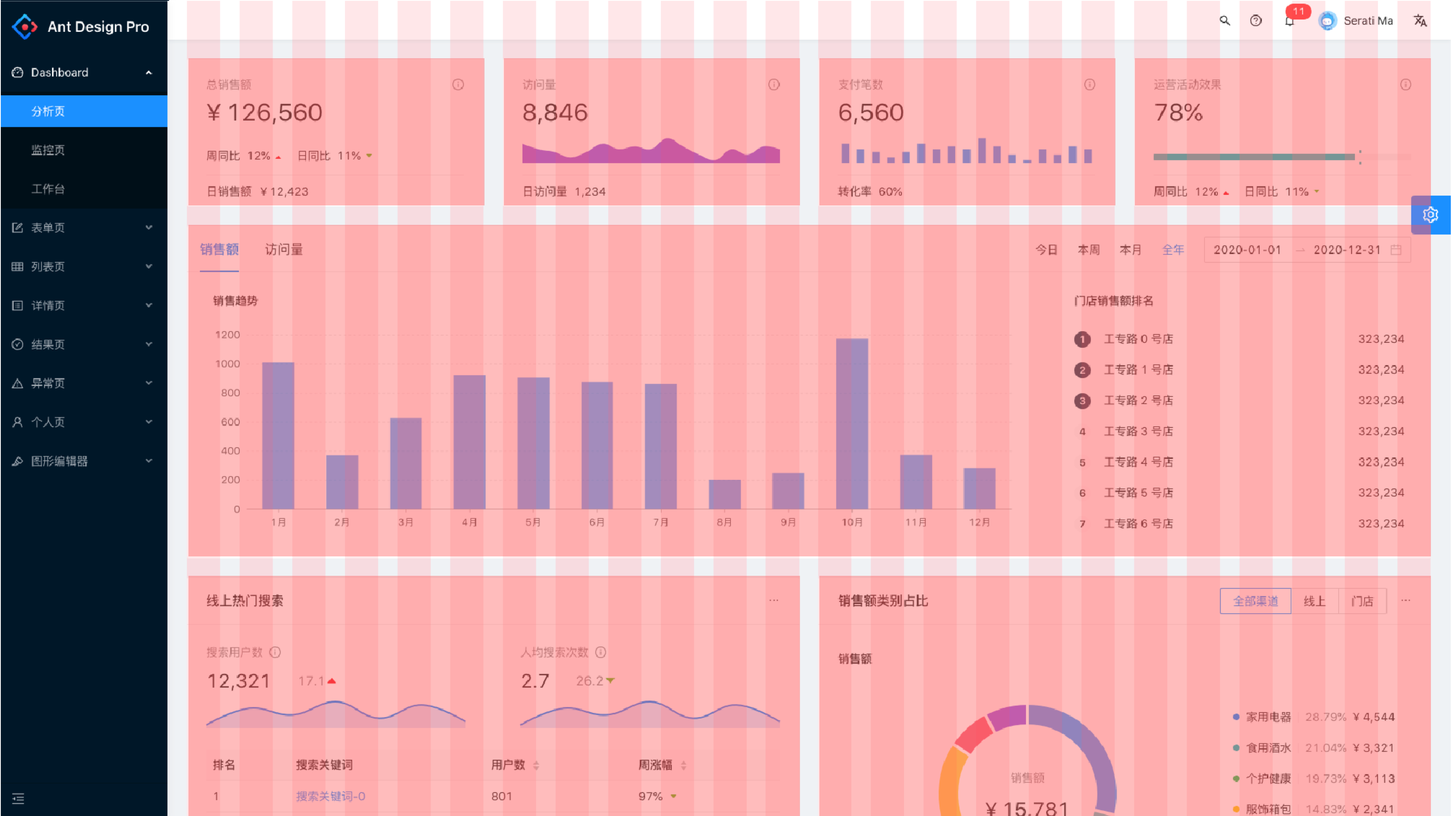 典型例子:Ant Design Pro(https://preview.pro.ant.design/dashboard/analysis)
