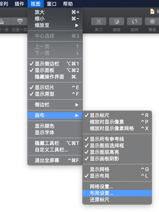 操作路径一:视图 👉 画布 👉 布局设置 操作路径二:显示(工具栏)👉 布局设置