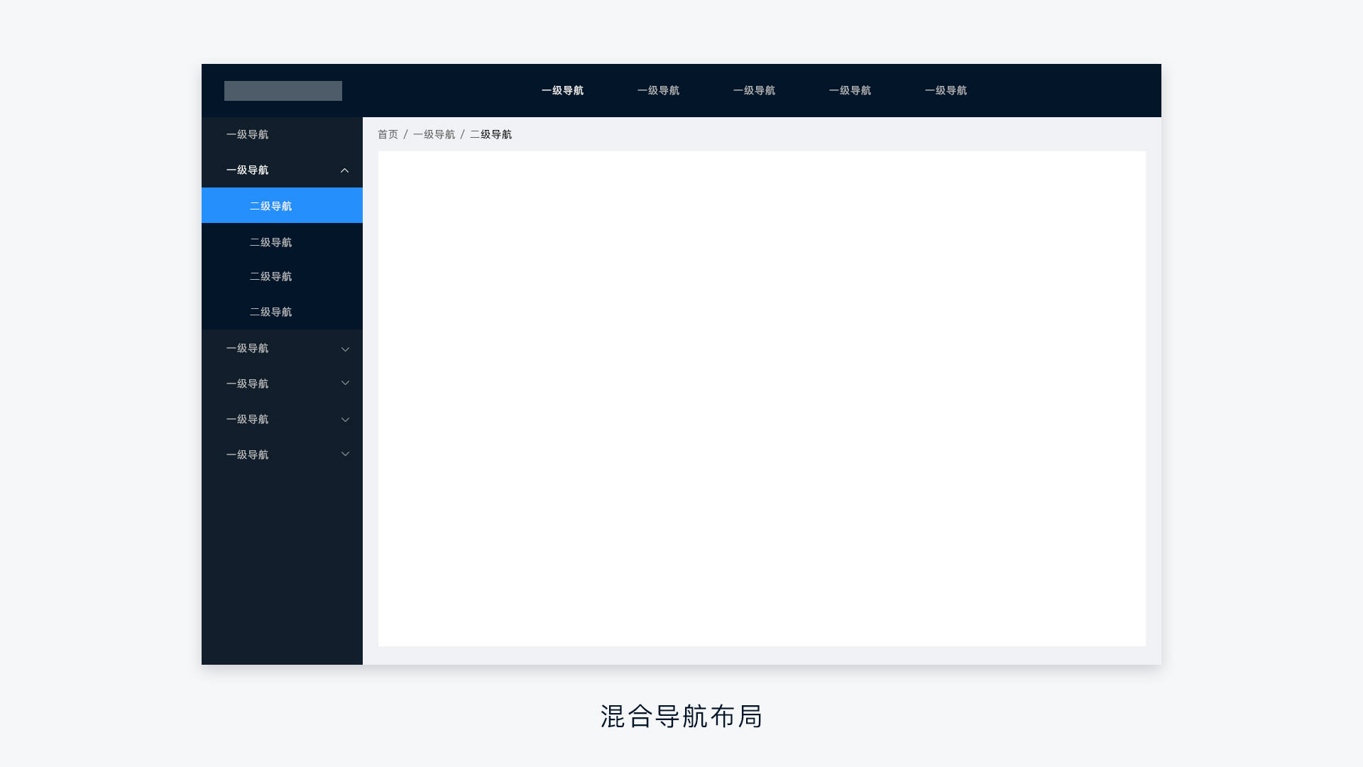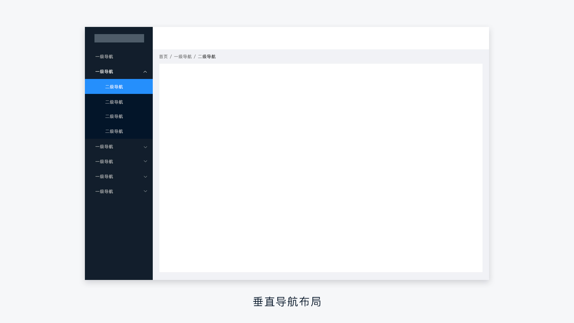一般主导航放置于页面的左侧固定位置,辅助菜单放置于工作区顶部。