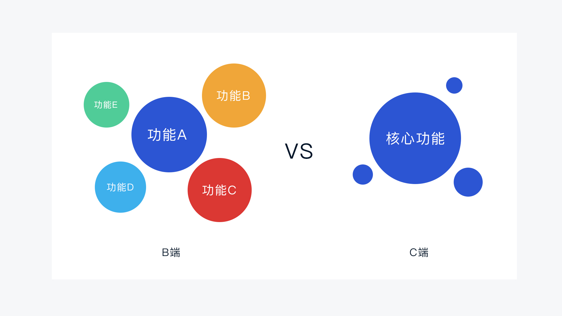 B端:有明确的盈利模式,一般通过付费定制获取收益。对于面向组织的B端产品,因为组织天然的“封闭”特性,并不需要获取大量外部流量,只针对组织内外生产关系,满足需求即可